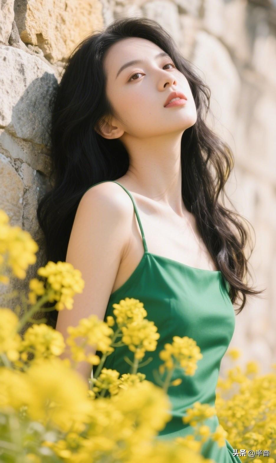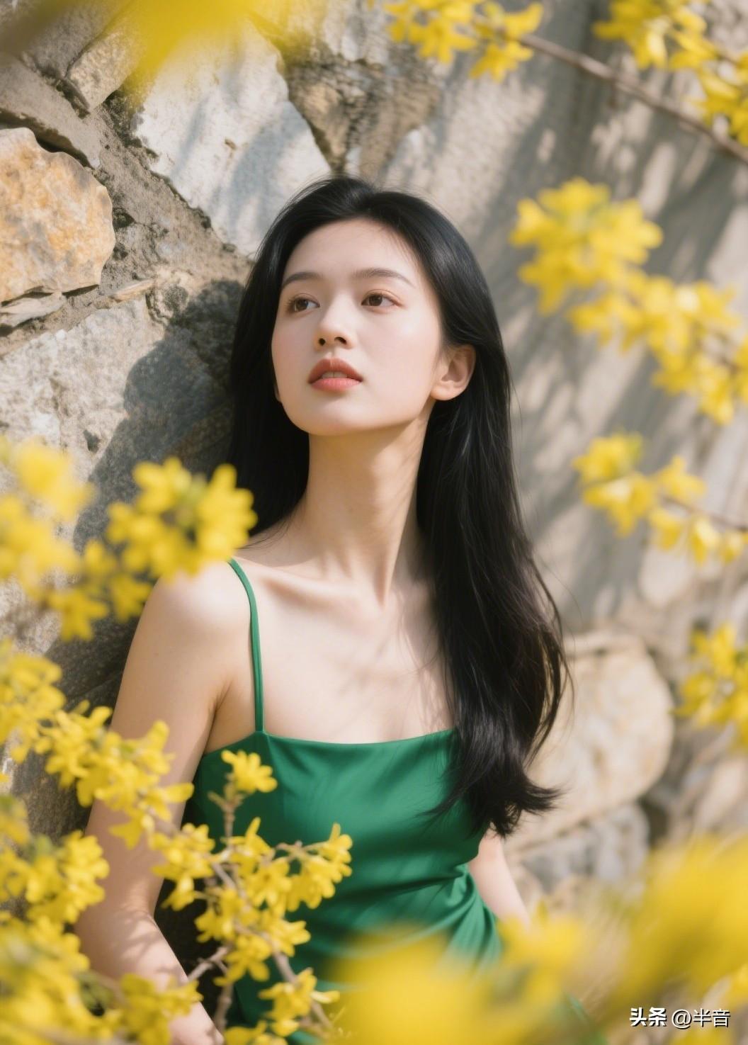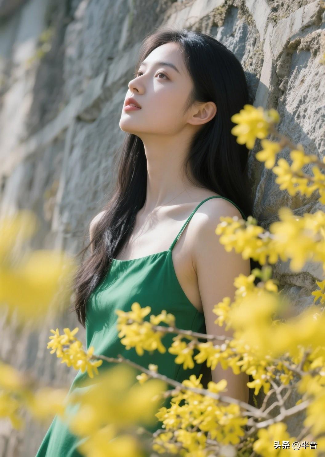 找一面石墙,穿一条绿裙子