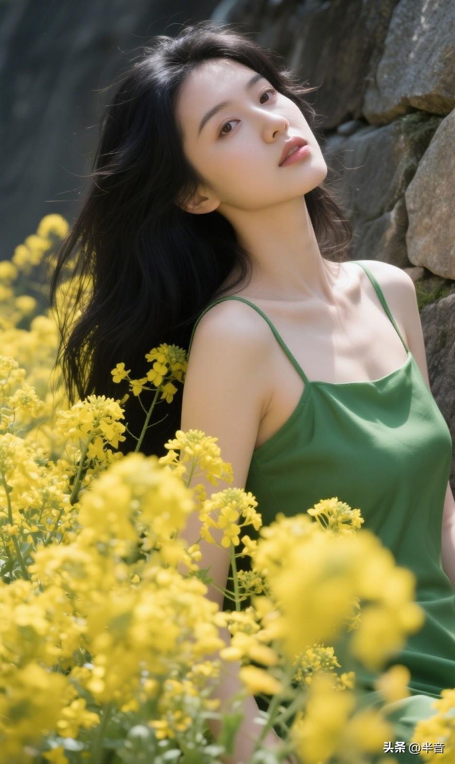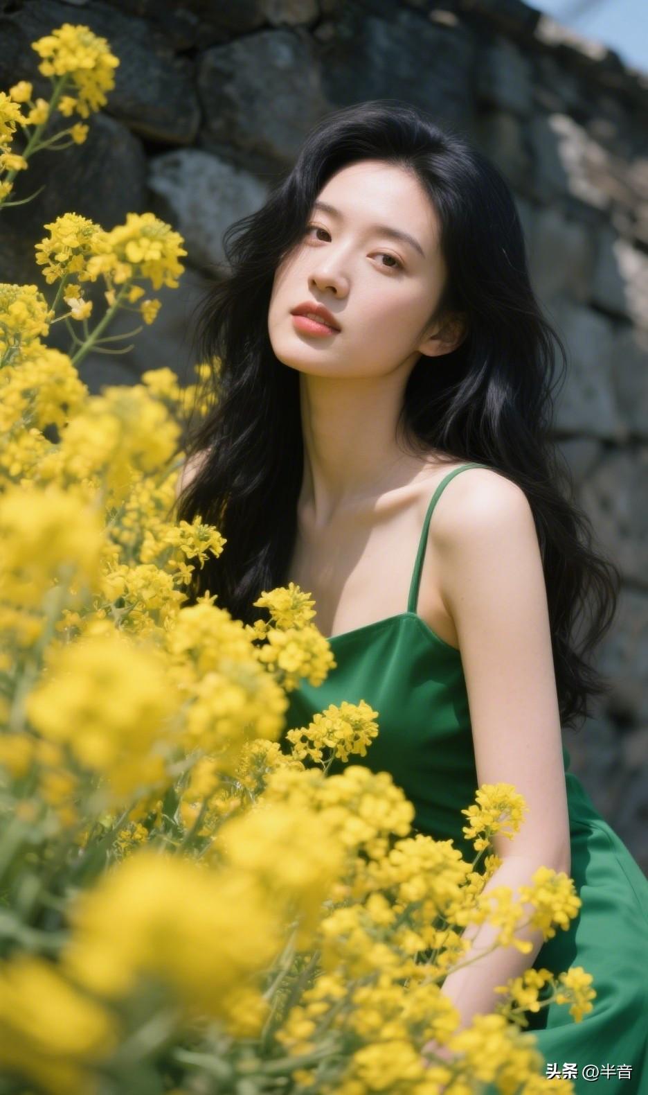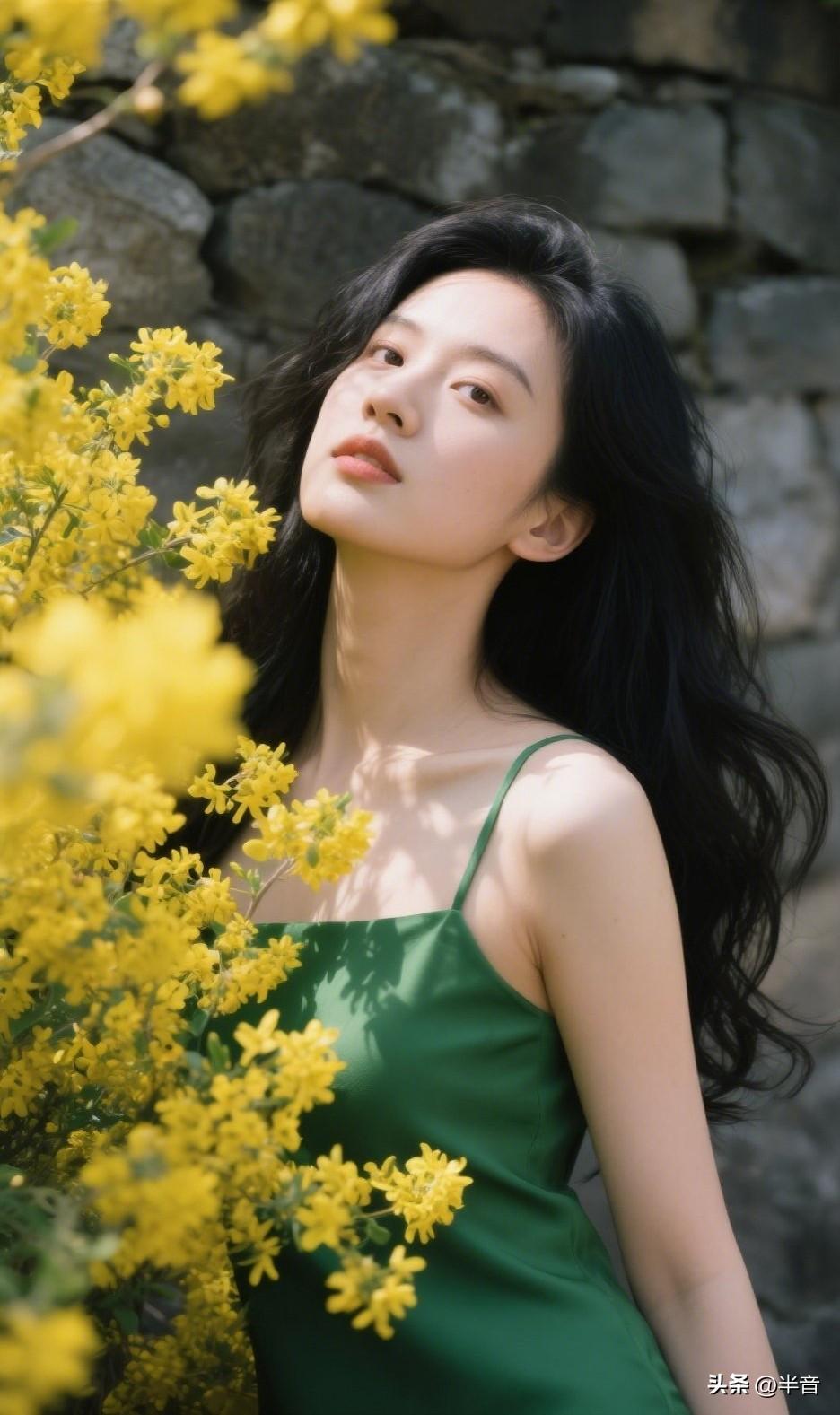 找一面石墙,穿一条绿裙子