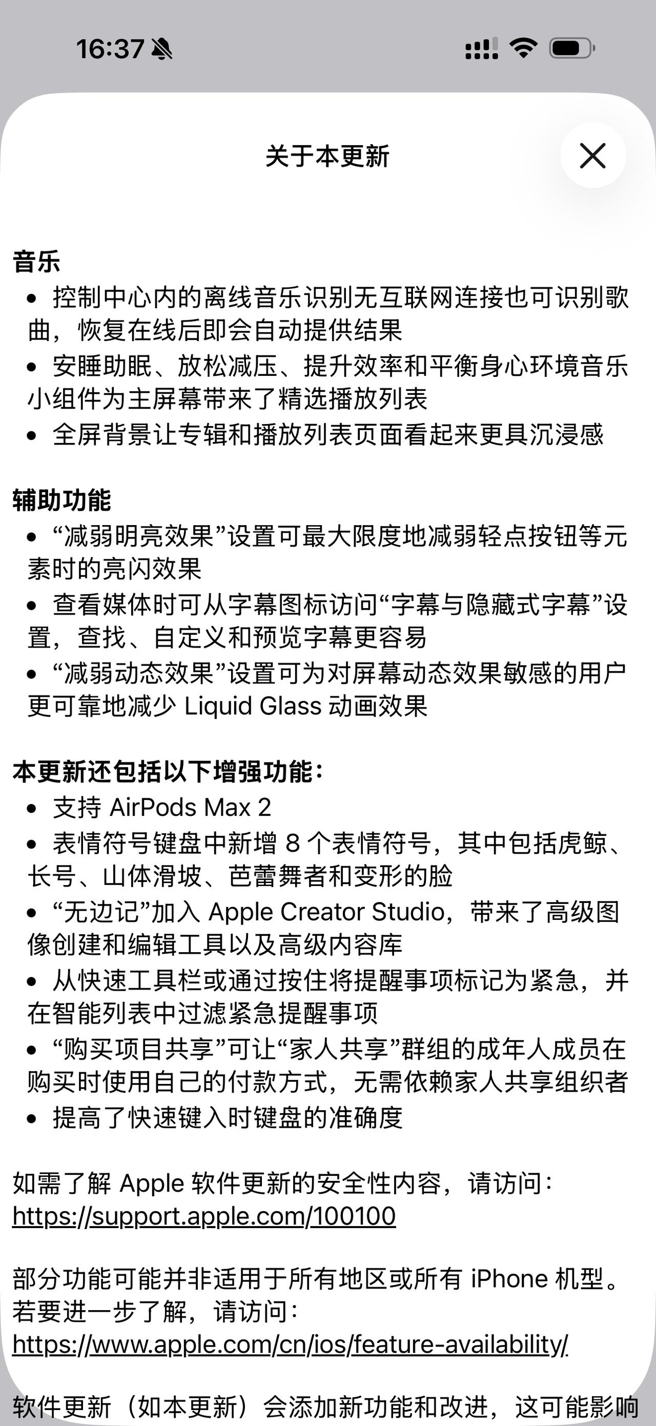 续航好了,信号强了,音质棒了,不掉帧了,不发热了,可以养老了[赞] 苹果近日火速推送iOS/iPadOS 26.4正式版(内部版本号:23E246),距上一正式版仅隔20天,堪称“速更天花板”! 官方日志只提8个全新表情,实则藏着大惊喜——虎鲸、扭曲脸、芭蕾舞者等8款新emoji之外,暗藏155个肤色适配彩蛋,总数达163个,精准戳中现代人复杂情绪表达需求。 不止表情狂欢,安全升级更致命!本次更新悄悄默认开启失窃设备保护,偷手机再无用处,高危操作需生物验证+1小时冷却期,隐私泄露风险直降72%,还封堵30+高危漏洞,彻底杜绝恶意攻击。 除此之外,后台卡顿、耗电异常等老痛点全修复,打字更跟手、续航更抗打。看似轻量更新,实则干货拉满,无冗余功能,每一处优化都戳中果粉刚需,赶紧冲就对了!你们升级了iOS26.4正式版了嘛?用起来感觉如何?[呲牙]
