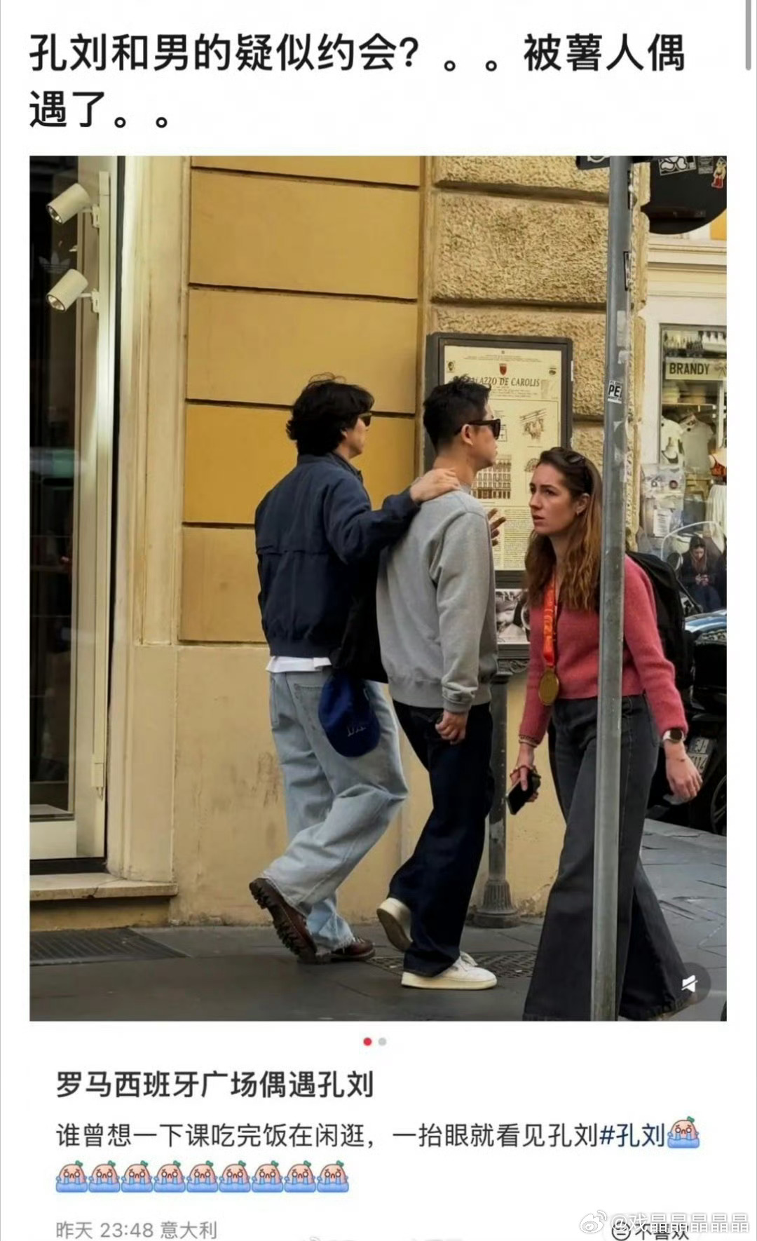 偶遇孔刘与男子搭肩散步其实有这个传闻很久了。