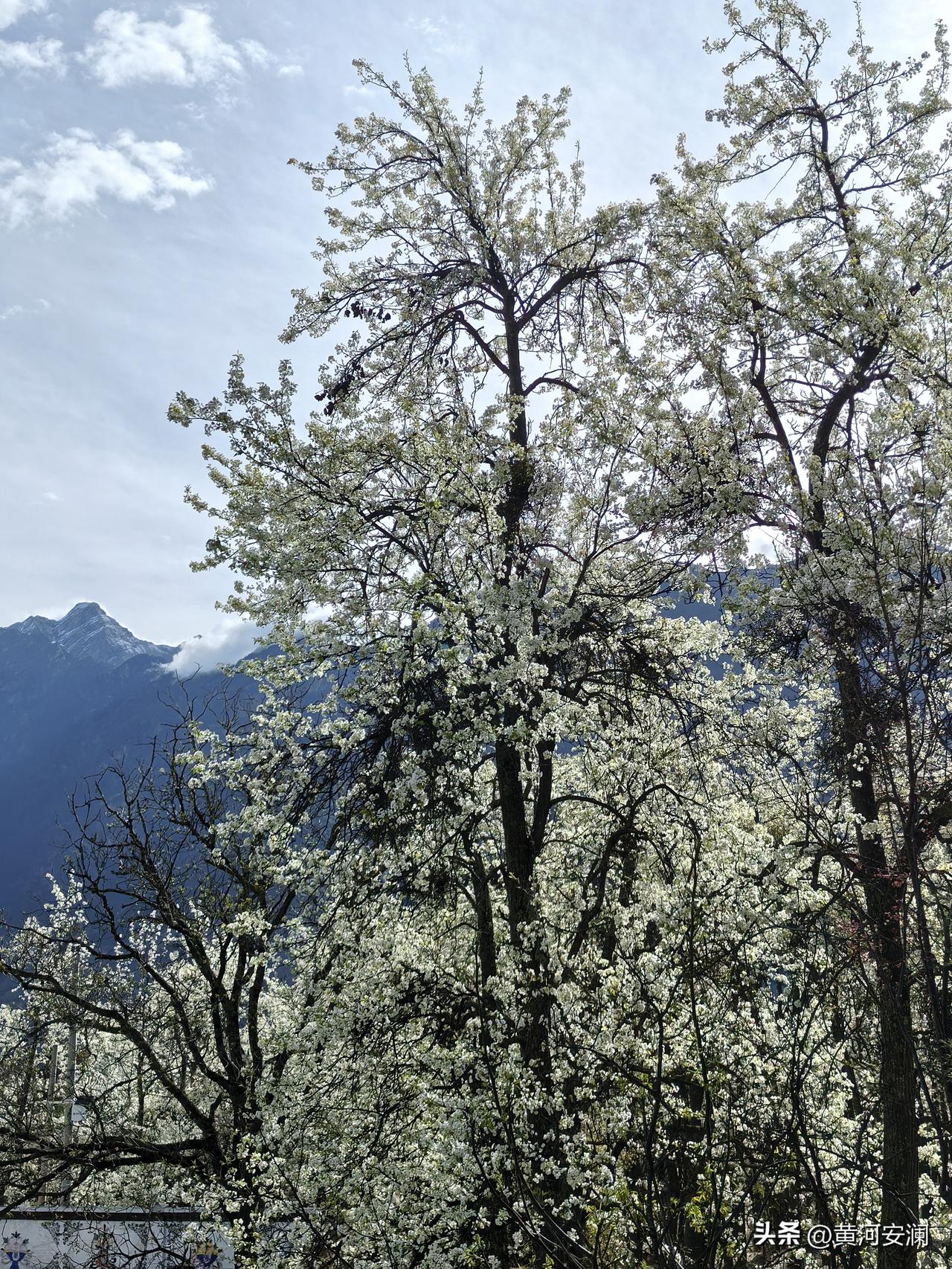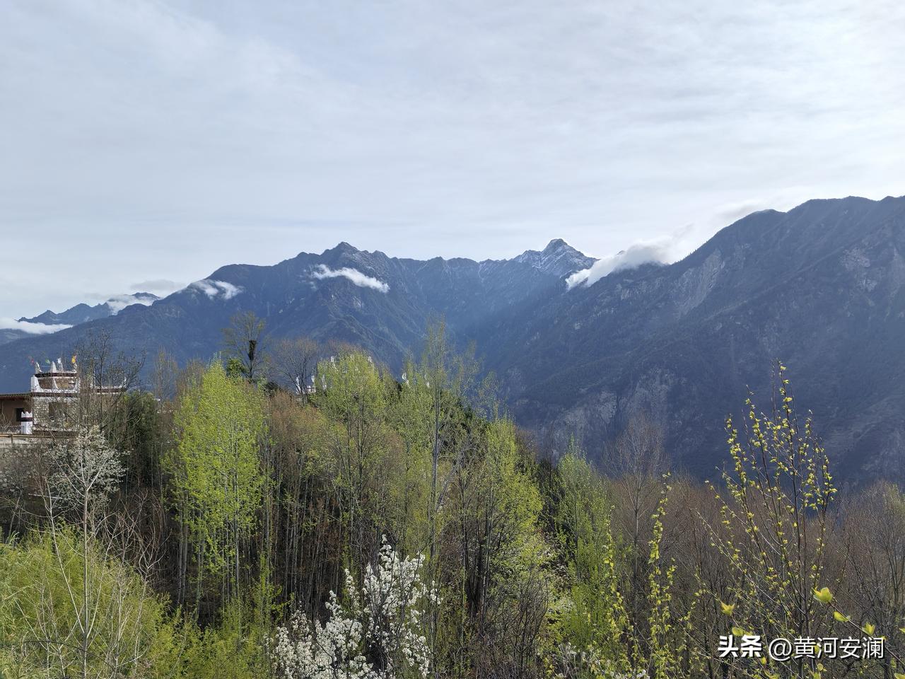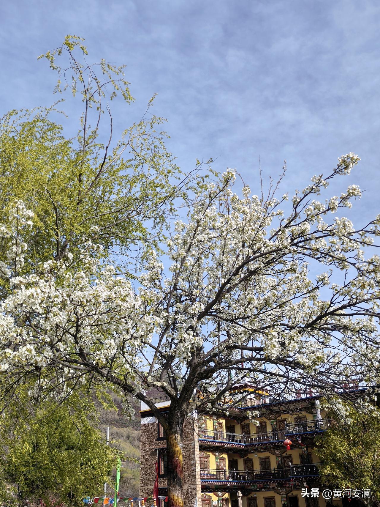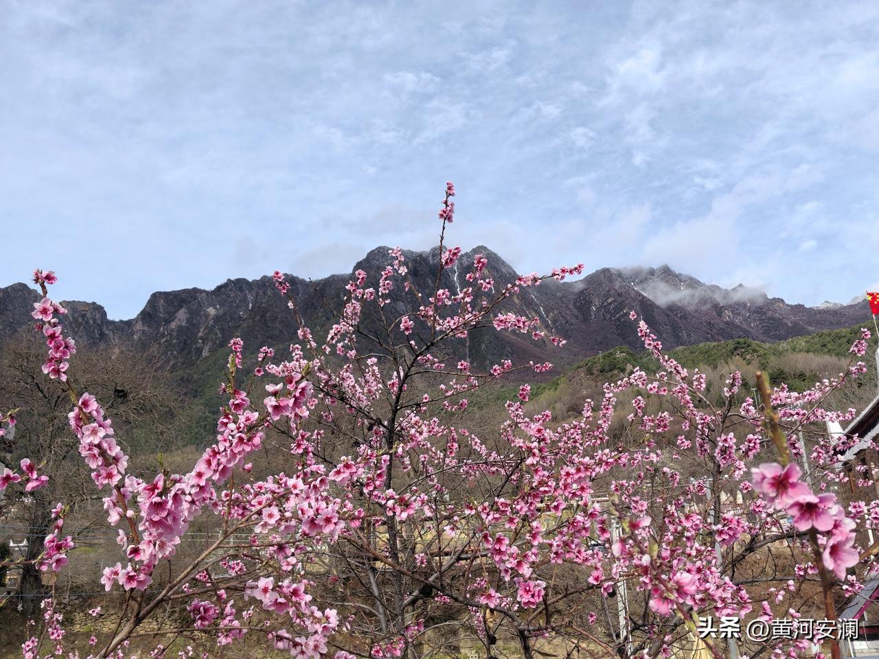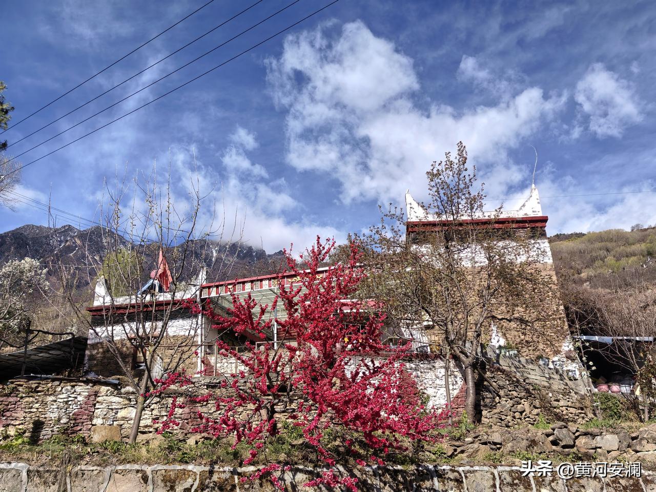 春天来临,梨花、桃花以及各种野花竞相绽放,藏楼宛如珍珠般璀璨夺目。可爱的牦牛在一旁悠然晃悠,构成了一幅极其和谐的画面。墨尔多神山的积雪与袅袅炊烟相互映衬,牦牛河谷的清风轻轻拂过经幡,宁静而美好。