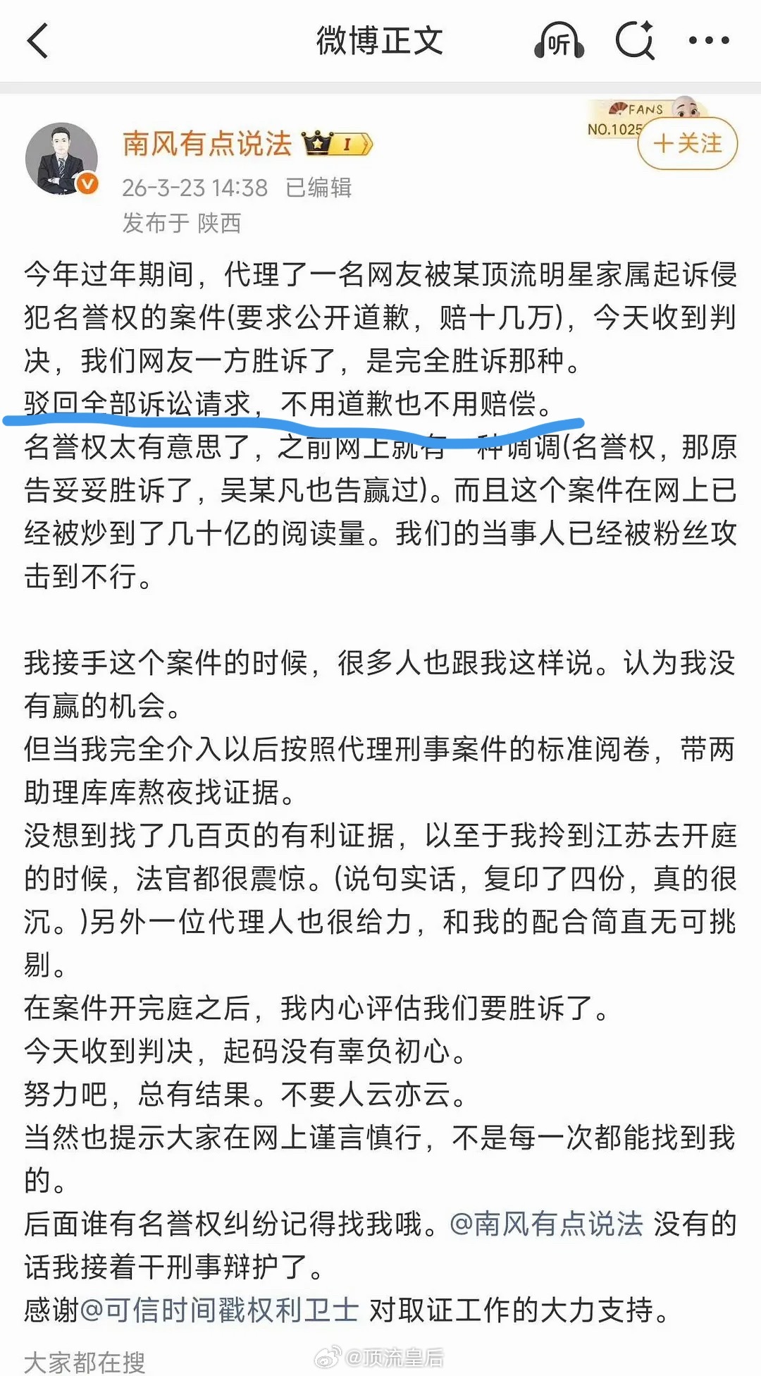我看到网友扒出律师说的顶流明星家属起诉侵犯名誉权要求公开道歉索赔十几万的案件,疑
