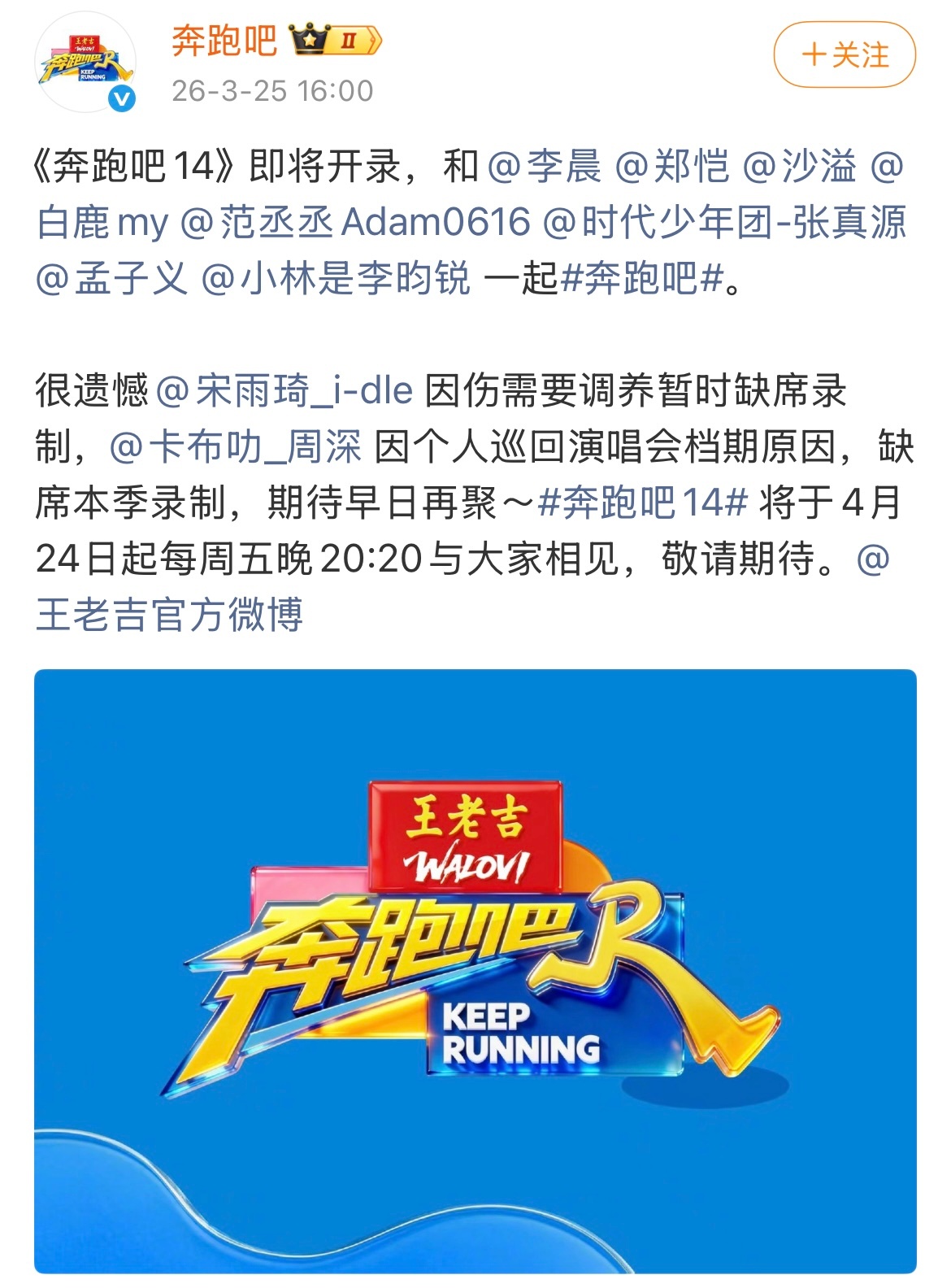 新一季跑男嘉宾阵容,陈哲远黄子弘凡飞行,宋雨琦退出,只有白鹿一个女常驻了