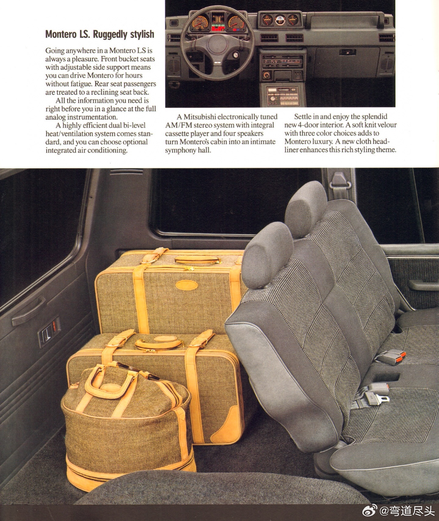 帕杰罗 1989年,四门版帕杰罗(Montero)——号称A Civilized Beast「文明的猛兽」首次登陆北美市场。正如三菱当时的广告语所说:"Suddenly, The Obvious Choice" “蓦然回首,它才是不二之选”。同期还有不少宣传语,比如Technology for People“以人为本的科技”以及From Baja to Beverly Hills“从巴哈沙漠到比弗利山庄”。型录大观车库里的旧书架MonteroPajero三菱自动车蒙特罗MitsubishiBajaToBeverlyHillspajeromitsubishi3个旧手机能换一台iPhone