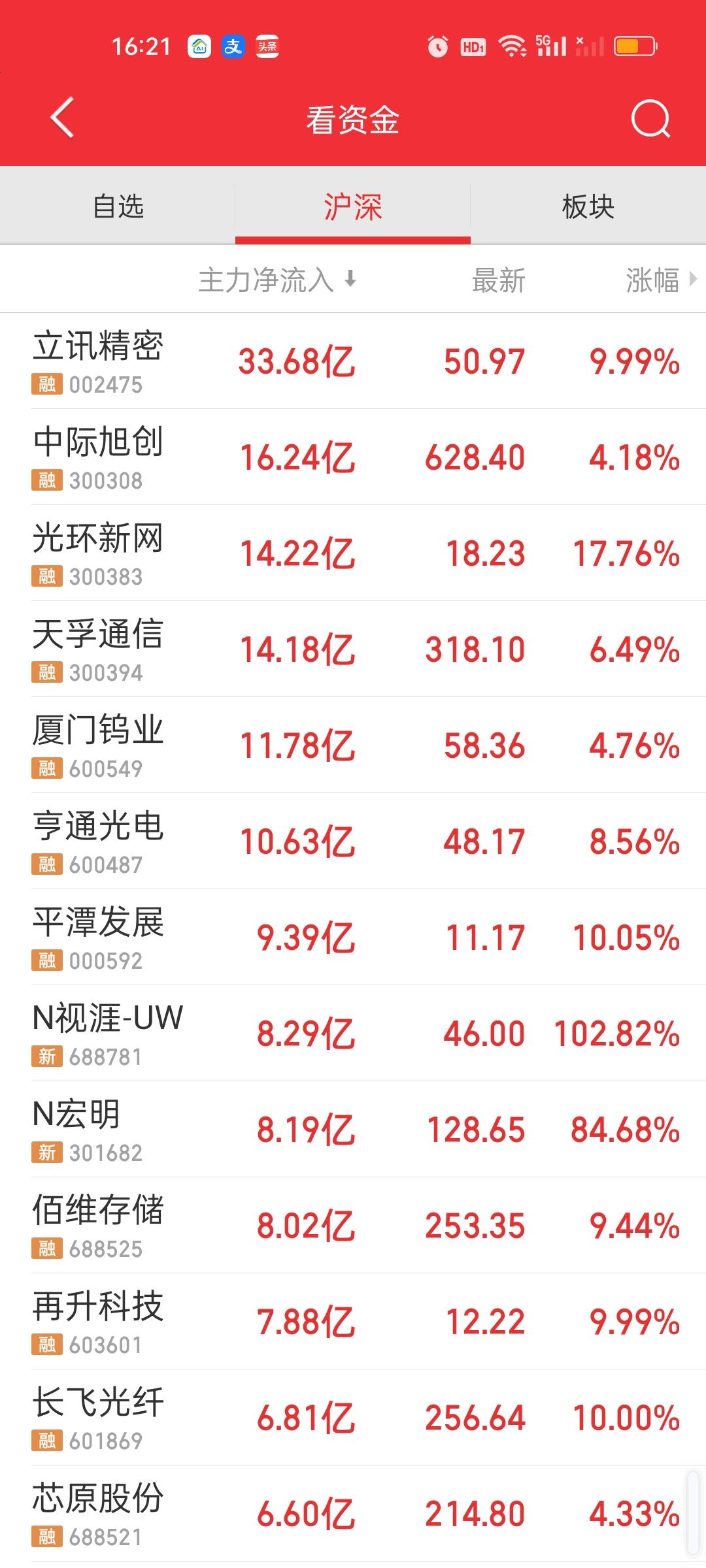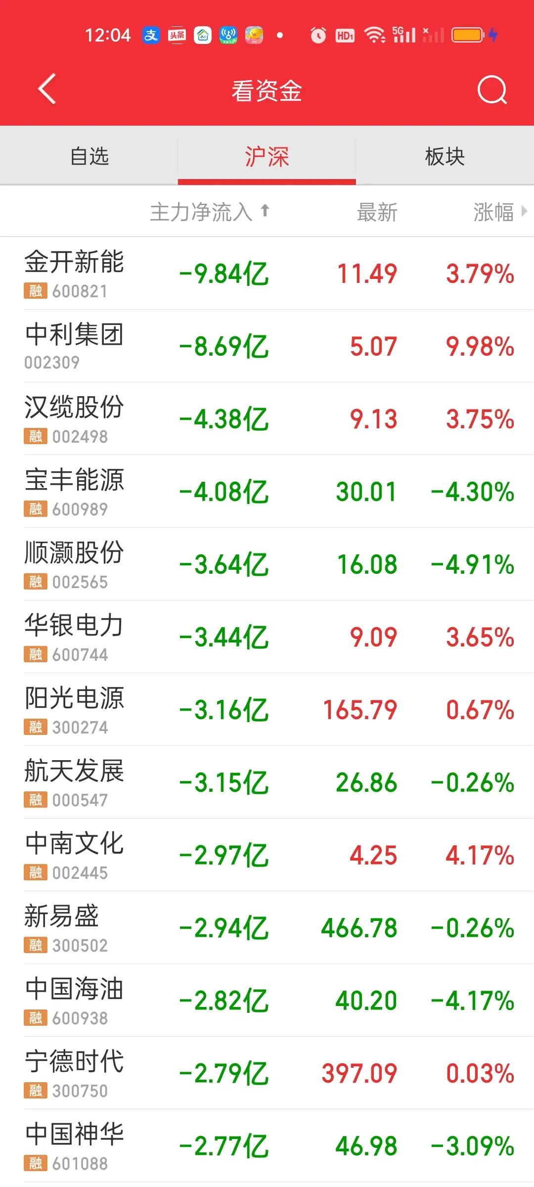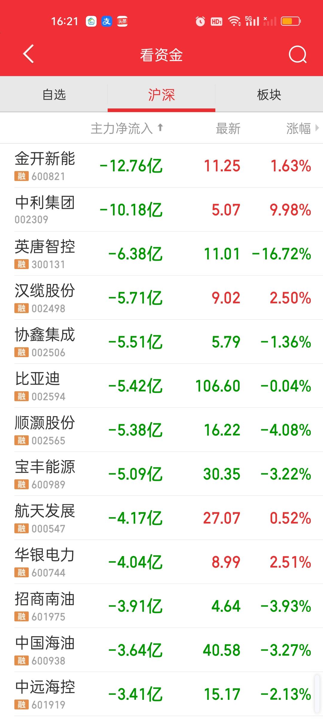 首先大盘肯定还会冲高,但场内和场外的操作会有所区别。我不认为上方缺口3955.71--3933.06会在这轮反弹中完全补掉,哪怕今天收盘收在了3933.06点,我也不认为反弹高度会到3955点。从这个角度讲,场内今天继续拿着是没有问题了,毕竟明天如果继续冲高还会有1--2%的利润。明天如果指数选择高开,尾盘选择下杀,最后未必能收红盘。场外也未必能收红。 主力资金净流入方面,流入资金超10亿的个股下午增加了厦门钨业和亨通光电。主力资金净流出超10亿的个股新增了金开新能和中利集团。不过中利集团尽管流出了巨额资金,但股价还是强势收获涨停了。