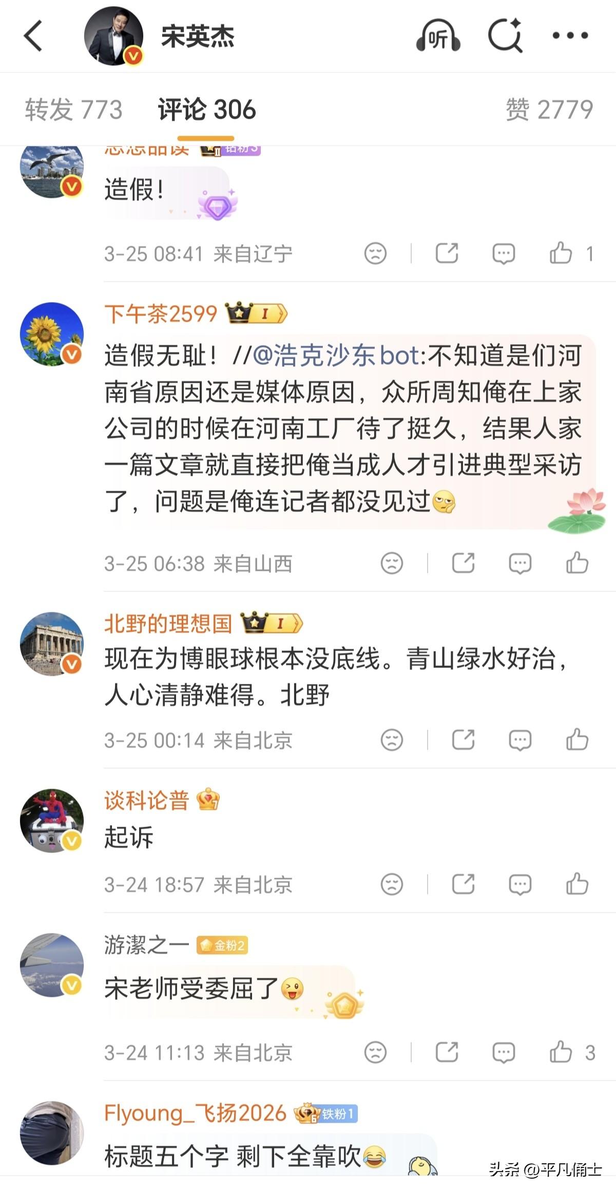 是什么事情让首席气象播报员宋英杰感到如此气愤呢?近日,气象播报员宋英杰微博发文称,我没有接受任何采访,也没有在任何场合进行过这样的表述。堂堂S报,如此造假,还登在S政府的官网。 原来有一家S报竟然在报道中赫然写道,气象局首席专家、二十四节气研究院副院长宋英杰表示:二十节气的萌芽、形成、科技定型、核心脉络都在XX…… 一家媒体,这公之于众的东西都不征求当事人,就这样明晃晃的把这个假信息登出去了,怪不得本人气愤。这份报纸想要出些风头,却无奈别人没有兴趣陪着你演戏。看看评论区,网友的眼睛也是雪亮的,这类信息一出现就知道是哪里。踏踏实实做实事、说真话难道真的很难吗?名声是自己一点点积攒的,民风也是一件件表现的,还是做老实人,办老实事,才更能得到社会的尊重和信任。大家说是不是呢!