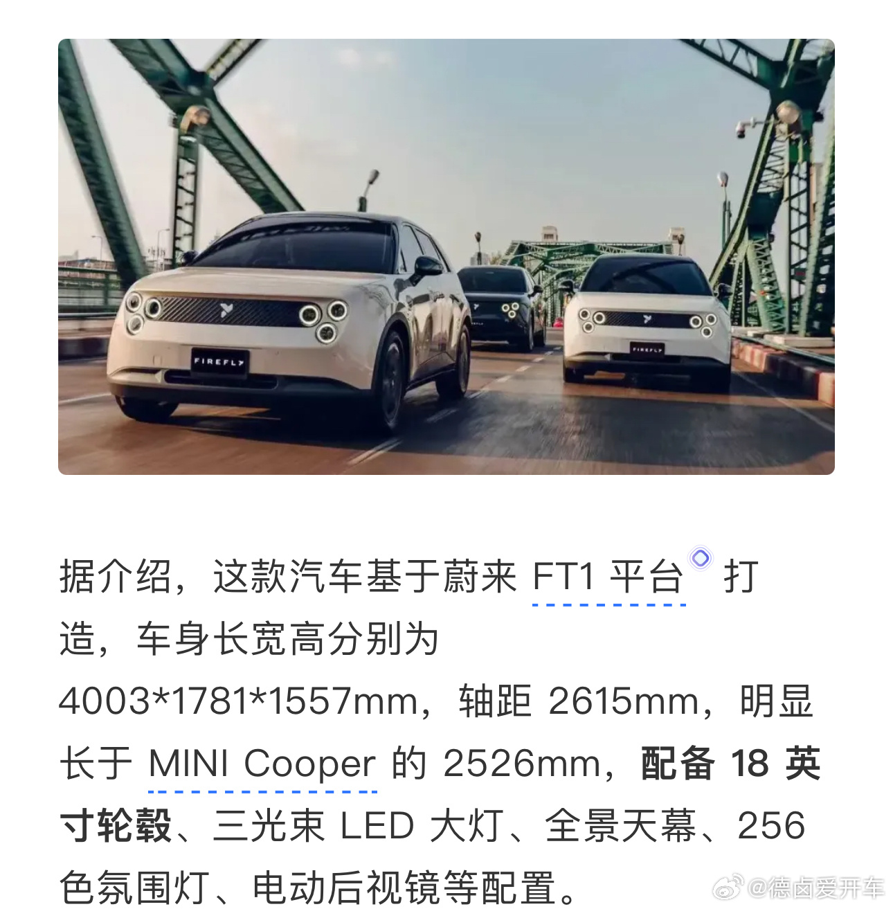 这次萤火虫在泰国上市的过程中,国/内外各媒体传达出来一个信息,将萤火虫的车型平台称为 FT1 平台,相当于NT3智能基因+小车专属硬件,想了下萤火虫是蔚来的全球化先导产品,也确实需要有一个完整的技术品牌来支撑。firefly萤火虫蔚来新能源汽车