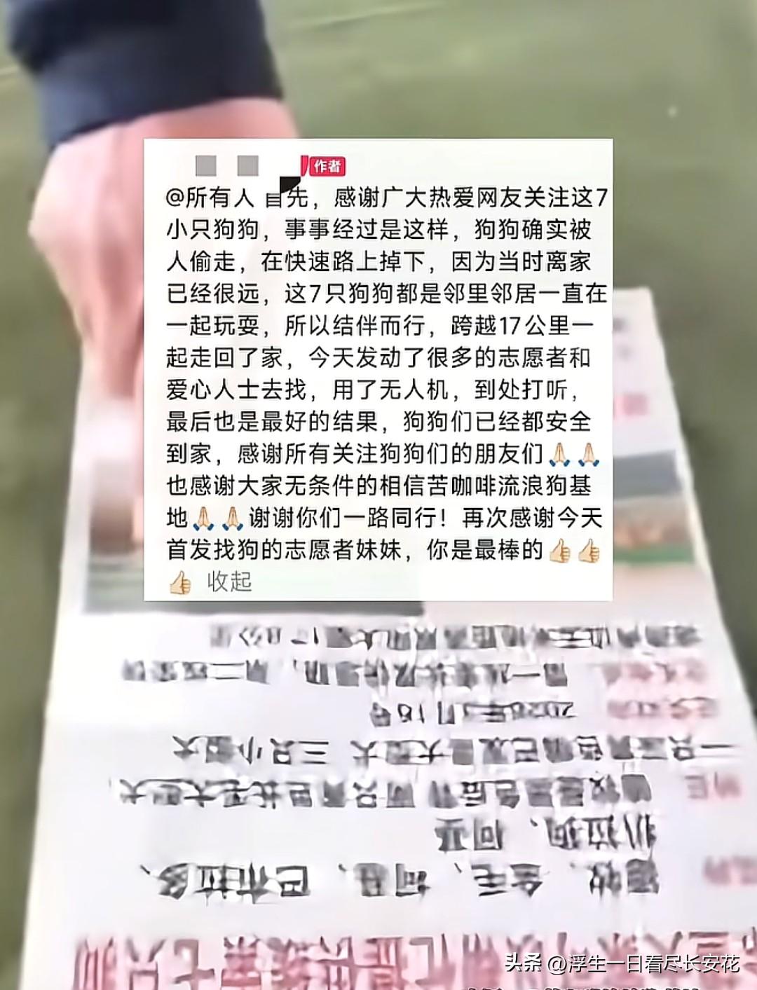 看到主人的采访,突然明白之前那些关于“狗狗结伴护友”“跨越17公里回家”的浪漫叙事,其实是我们一厢情愿的想象。真相是德牧正处于发情期,其他公狗只是本能地围绕着它,它们远离人群也不是为了“抱团求生”,只是动物的自然行为而已。 我们总喜欢把人类的情感投射到动物身上,看到狗狗结伴就联想到“友情”,看到它们护着同伴就觉得是“忠诚”,却忽略了动物行为背后的生物学逻辑。就像这次的7只狗狗,它们确实是同村的邻居,平时一起玩耍,结伴回家也是事实,但“保护受伤同伴”的细节,可能只是它们在陌生环境下的本能聚集,而“德牧发情”才是它们紧密相随的核心原因。 这种“拟人化”的叙事本身没有错,它能让我们感受到温暖和善意,但我们也要明白:过度的想象可能会让我们忽略动物的真实需求。比如,当我们感动于“狗狗千里归家”时,更应该关注的是“农村散养犬的安全问题”;当我们感慨“动物的友情”时,更应该做的是“尊重动物的自然习性”。 我们该思考的是,到底是“用人类的情感理解动物”重要,还是“用科学的方式尊重动物”重要?当我们把自己的期待投射到动物身上时,是不是也在逃避对现实问题的关注?对此,大家怎么看呢?欢迎留言。
