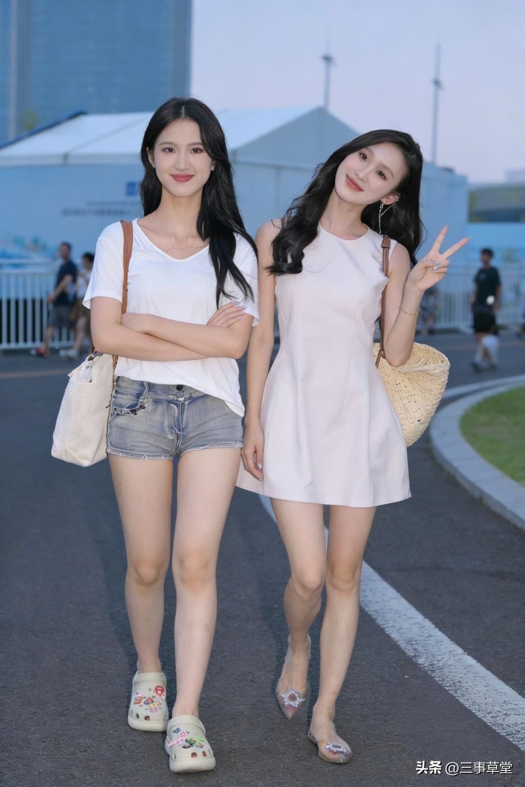 为什么看见美女会忍不住多看几眼 左边白T + 牛仔短裤,搭配洞洞鞋,随性又减龄