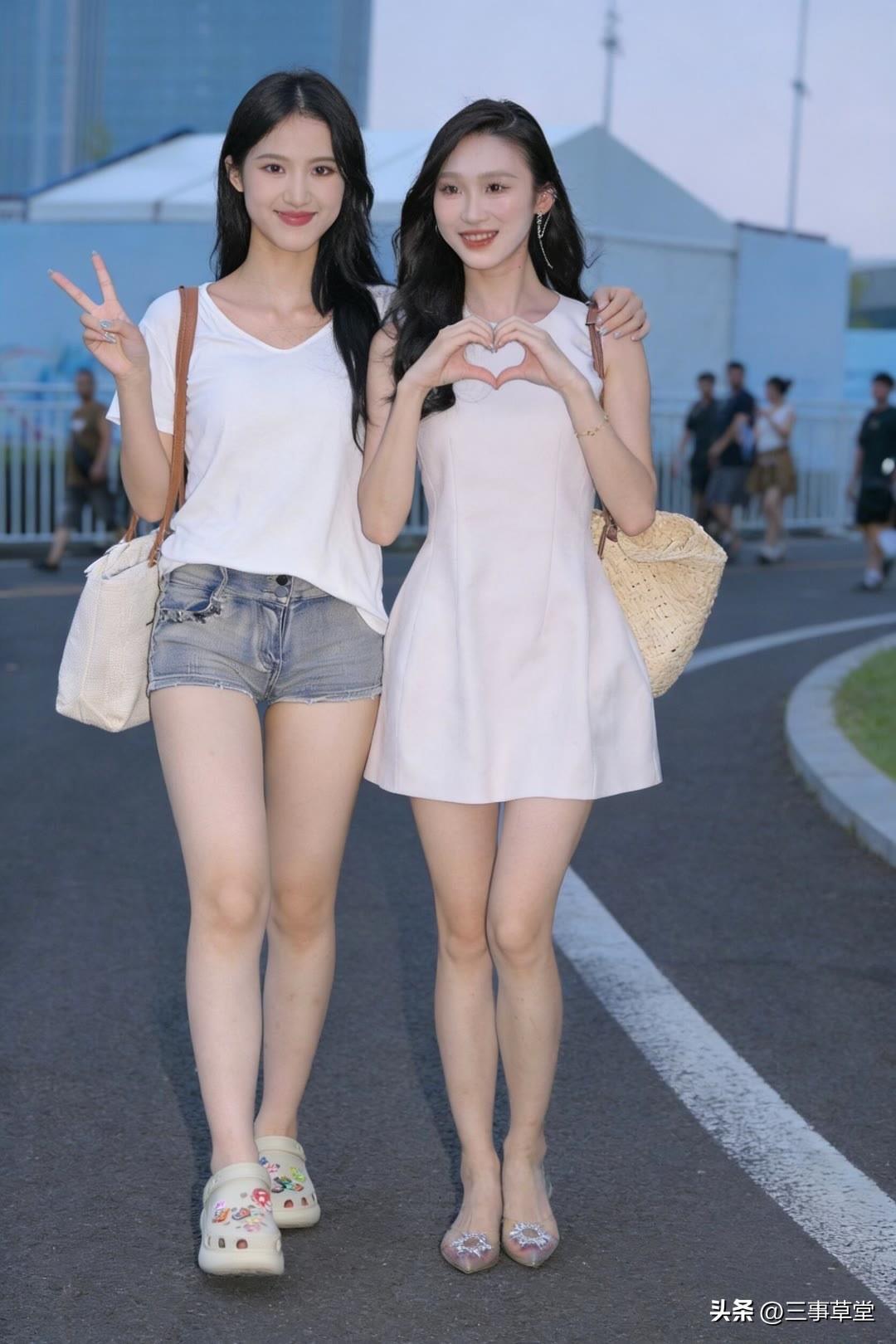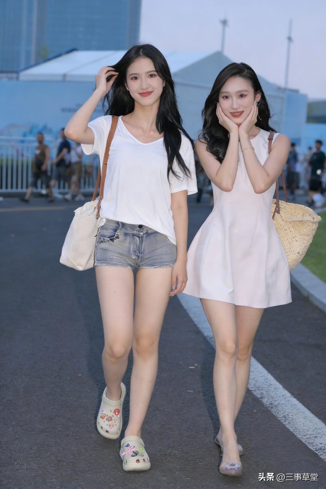 为什么看见美女会忍不住多看几眼 左边白T + 牛仔短裤,搭配洞洞鞋,随性又