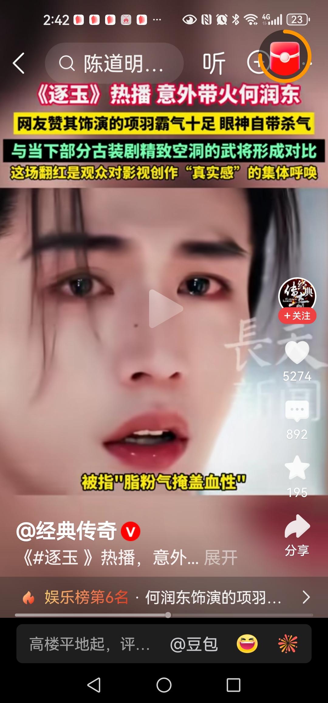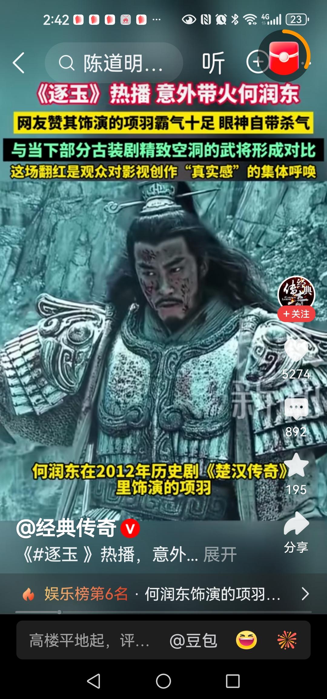 《逐玉》热播意外带火何润东网友赞其饰演的项羽霸气十足眼神自带杀气与当下部分古装剧精致空洞的武将形成对比 张凌赫何润东的武将,可比?不可比? 张凌赫的武将,是拍给十来岁二十出头的少男少女看的,要的是帅气,小脸儿足够漂亮就好,其它的无所谓了,这种片是拍给持定观众看的,给那种心中装着梦的,在准备着恋爱,正在恋爱的少男少女们看的。 何的武将确实很威猛霸道,浑然着一种气力拨山河气盖世的粗壮,奈何现在的少男少女不喜欢这种粗壮的男人,只喜欢那种有着脂粉气的弱不经风的美男。 影视剧的观众是谁,是少男少女,所以影视剧是拍给少男少女看的,所以不比不比,不必去比。