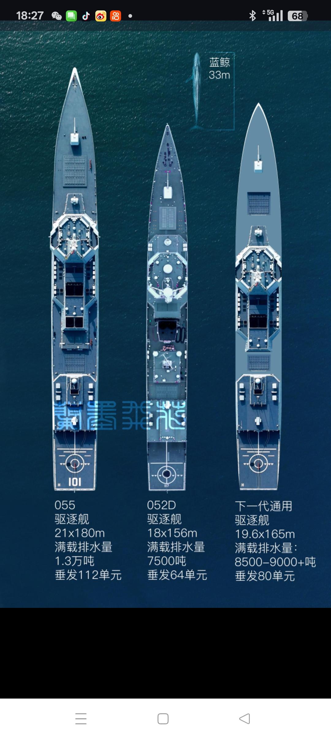 中国盾舰将进入“两万岁”及“九千岁”时代! 中国海军盾舰的代表作055大驱及052D的最后一个批次的建造计划最晚将在2028年完成,055大驱的最终数量将是14艘,而052D的最终数量将是39-44艘。同时,2万吨级的超级驱逐舰及9000吨级的通用驱逐舰将投入建造,并成为其后30年中国海军盾舰的主力舰型,其中2万吨级驱逐舰的建造数量不会少于20艘,9000吨级驱逐舰的建造数量不会少于40艘,它们将成为中国海军核动力航母打击群及两栖打击群的带刀侍卫或驱护舰队的旗舰。 2028年起,中国海军盾舰将正式进入“两万岁”及“九千岁”时代!届时,中国海军将形成7500吨级052D、9000吨级通用舰、13000吨级055大驱、20000吨级超级驱逐舰为主体、052C驱逐舰及现代级驱逐舰为补充、高低搭配、优势互补、配置灵活、实力强劲的盾舰体系,随着核动力航母的装备成军,中国海军综合实力将再上一个台阶。