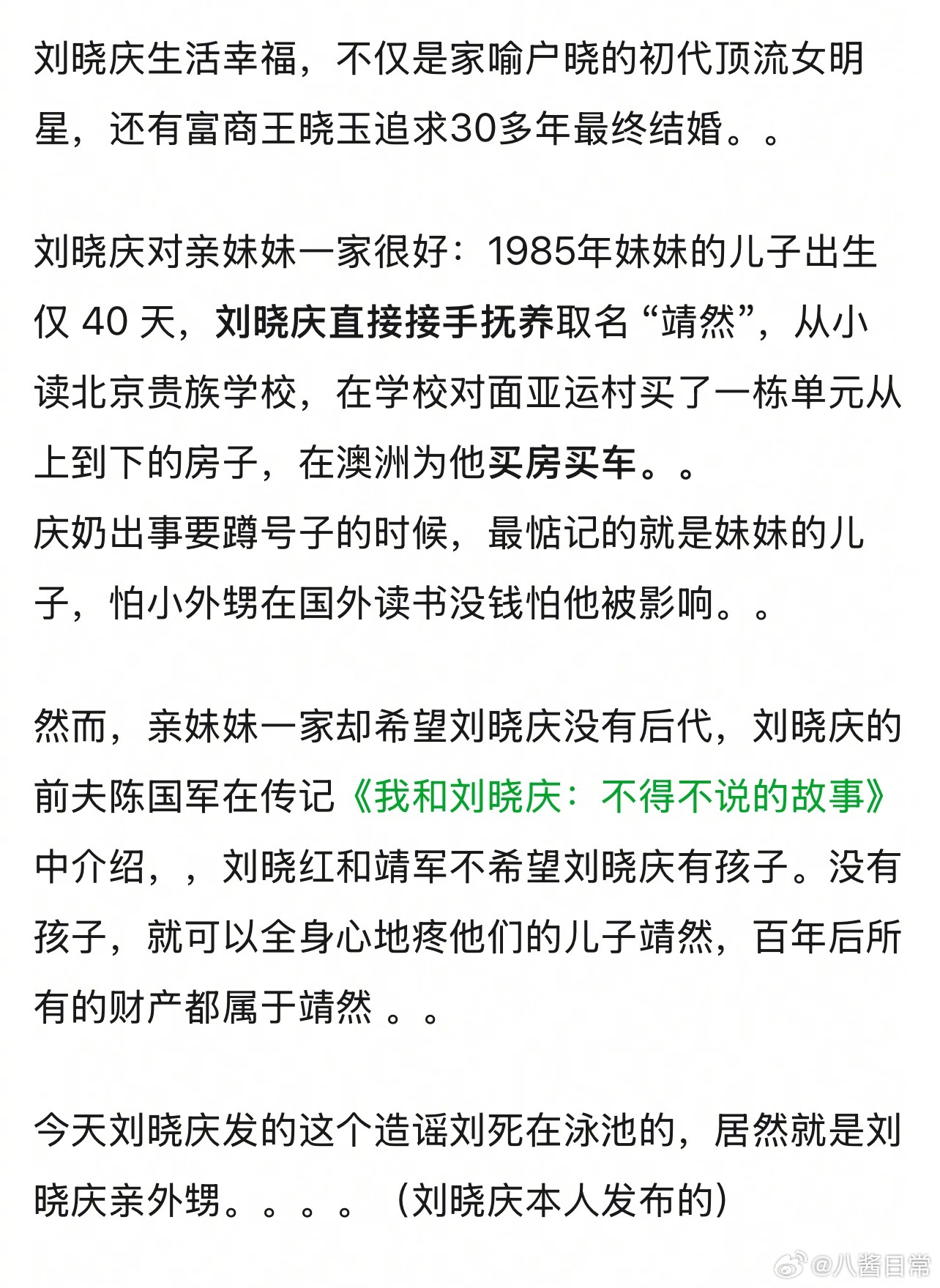 造谣刘晓庆去世的是她外甥