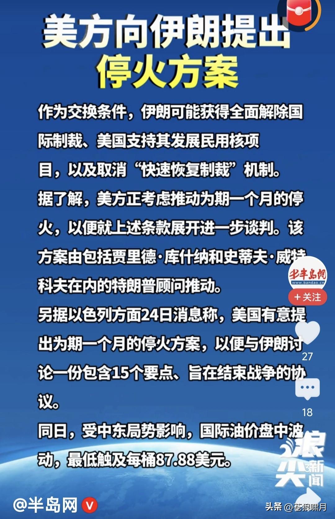 川普唱的哪出戏?一边猛炸伊朗民用设施,一边通过“第三方”提谈判建议,同时调集陆战部队前往中东? 是消耗不起撑不住,真想谈判?还是以打促谈,逼伊朗就范?或者以谈判换时间,调兵控制霍尔木兹海峡,锁死伊朗经济命脉,逼其彻底妥协? 看来此前有消息,美伊通过“第三方”秘密接触属实。尽管伊朗不承认,但将在“巴铁”谈判可能成真!形式是“边打边谈”“以打促谈”?能谈成吗? 关键是伊朗,同意美以的“15条”吗?这些条款中,最重要仍是三点:停止支持“哈真胡”,放弃核武器研发,削减导弹射程与数量!伊朗答应吗? 估计很难答应!但若不答应,美以必将加强打击,包括占领哈尔克岛,斩断伊朗石油外运。经济命脉被锁死,伊朗现政权何以为继?不敢想象。 果真如此,伊朗必将绝地反击!围绕哈尔克岛港口与霍尔木兹海峡,爆发一场新冲突?如果这样,世界油价将暴涨,谁能承受得起?还是别啊! …………