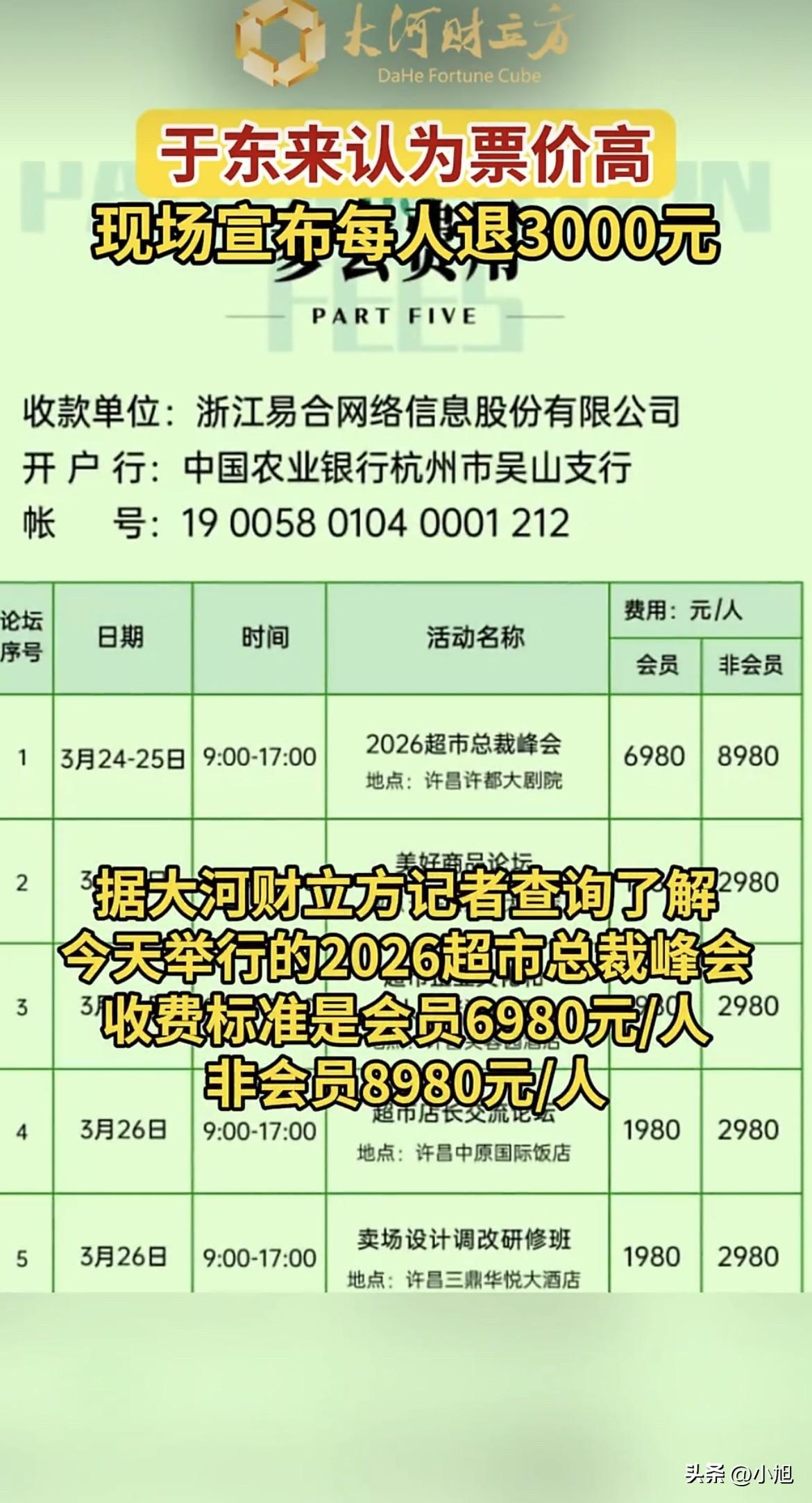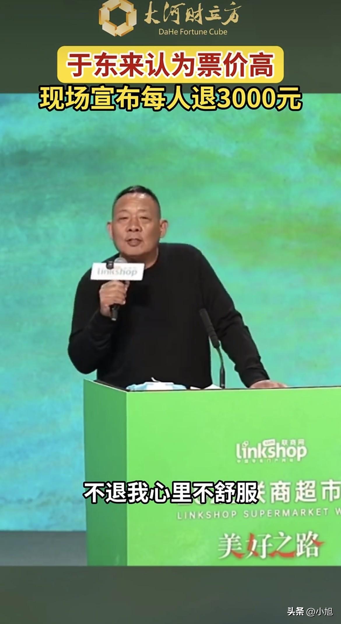 你想啊,一个能掏8980来开会的人,缺这3000块吗?不缺。但这3000块退的是于东来的态度。他告诉这些人:我知道你们是真心想学的,你们花了这个钱,我领这个情,但我不能让你们花冤枉钱,多出来的部分,我退给你们。