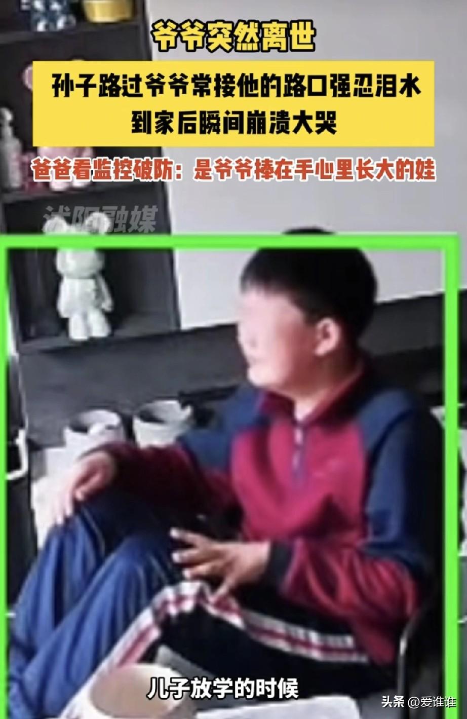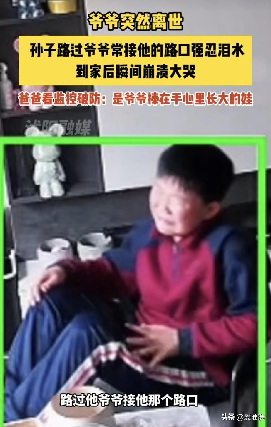 “亲情难忘!”11岁男孩放学回家,刚坐下就放声大哭,原来是爷爷突然离世,他路过以前爷爷经常接他的路口,想到以后再也见不到爷爷了,触景生情,男孩爸爸站在一旁也不知道怎么安慰。 福建南平,傍晚放学时分,一个11岁的男孩背着书包走进家门,他像往常一样把书包放在一边,人坐到沙发上,还没来得及换鞋,眼泪就先涌了出来,紧接着整个人放声大哭,哭得肩膀一抽一抽的,连气都喘不匀。 爸爸正在厨房里忙活,听到哭声赶紧跑出来,第一反应是孩子在学校受了欺负,他没急着问,只是坐到孩子旁边,轻轻拍着他的背,等那阵最猛烈的哭声慢慢缓下来,过了好一会儿,男孩才抽抽噎噎地开了口。 原来放学路上,他正好经过那个路口,就是爷爷以前每天接他放学时等着他的地方,那个路口还在,路边的树还在,可站在那里的人,再也不会出现了。 孩子的爷爷今年才67岁,平日里身体硬朗得很,谁也没想到,就是上山挖了一回笋,人就突然走了,家里那几天乱成一团,办完后事,日子又渐渐回到原来的轨道上。 大人们忙着上班、做饭、接送,表面上看,一切都恢复了平静,爸爸以为孩子年纪小,慢慢也就接受了,却不知道这孩子把所有的思念都压在心底,一点也没表露出来。 这个男孩从出生起就是爷爷一手带大的,小时候喂饭、哄睡、陪着学走路,上学后每天准时出现在那个路口,风雨无阻爷爷把他捧在手心里养了十一年,爷孙俩的感情,是实打实一天天处出来的。 孩子在城里上学,爷爷也跟着在城里住,每天掐着点出门,站在路口最显眼的位置,生怕孙子出了校门找不到他。 那天放学,男孩和同学一起走,路过那个熟悉的路口时,脚步不自觉地慢了下来,他下意识往那个方向看了一眼——空荡荡的,只有风吹过路边的树叶。 那一瞬间,他心里忽然明白过来,从今往后再也看不到爷爷站在那里冲他招手了,再也没人接过他的书包顺手拎到自己手里了,鼻子一酸,眼泪在眼眶里直打转,可他身边还有同学,就使劲咬着嘴唇,仰着头,硬是把眼泪憋了回去,一路走回家,开门,放下书包,坐到沙发上,那根绷了一路的弦终于断了。 有网友看到这事后留言说:“最怕的就是这种,平时不哭不闹,突然某个瞬间就崩了。”还有人说:“我到现在都不敢走我爸接我放学的那条路,已经十年了。”也有人说:“这孩子重情义,爷爷没白疼他一场,有些爱,要等再也够不着了,才知道有多重。” 这是他第一次经历亲人的离开,还没来得及长大,就要学着告别,这种成长来得太早,也太疼,但那一场撕心裂肺的哭,其实是他用自己的方式,认认真真地告诉爷爷:“我想你了!”