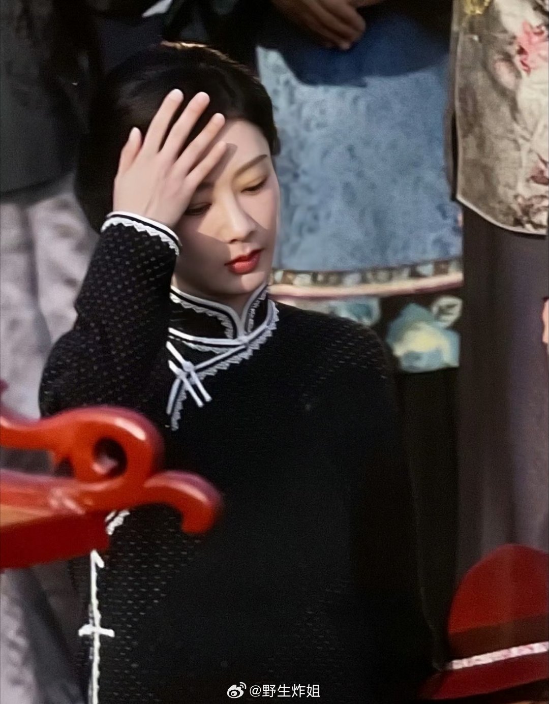 杨紫主演的《玉兰花开君再来》的最新路透妆造图,盘起了头发穿起了民国时期的服装,有