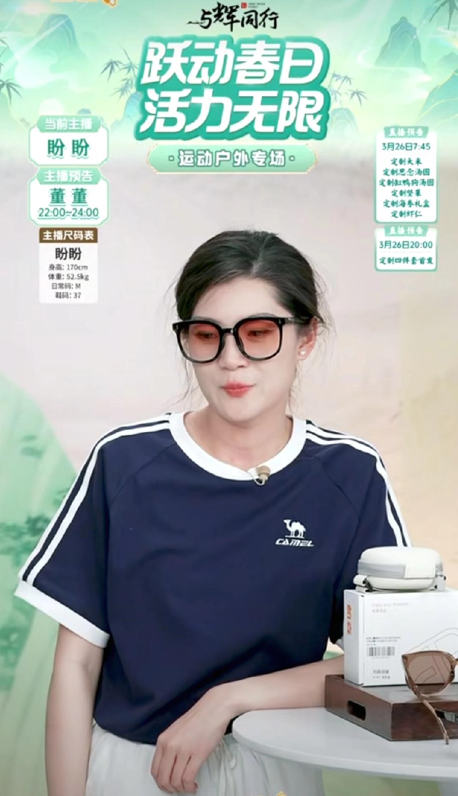 盼盼替董宇辉的班,讲的第一个品是墨镜,她眼睛上戴一个,头上还带一个,真是酷极了!