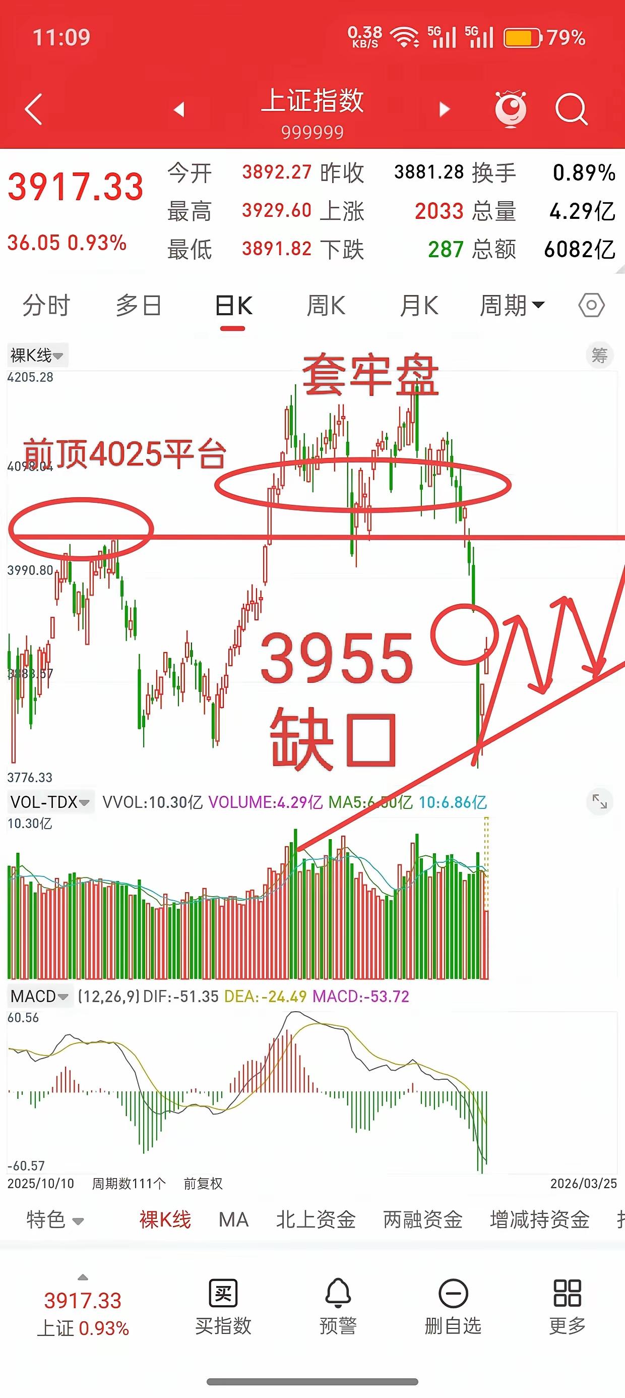 今天A股放量大涨,看着这势头,突然想起老股民常说的那句话——历史总在重复,就看你能不能抓住规律。 翻了翻往年走势,去年4月7号那个跳空缺口3319,后来回补时第一波反弹到3312,就差7个点,接着回调,然后再上攻;11月21号的缺口3927,补完直接冲到3936,也是先回调再发力。再往前数,2021年3月,从3731跌到3328,跌了403点,第一波反弹150点到3478,接着也是来回震荡,最后慢慢拉上去。 巧的是,这次从最高点4197跌到周一的3794,正好也跌了403点,还留下个3955的跳空缺口。按这规律,第一波反弹先看3955附近,补了缺口再说。别以为补完就一路涨,很大可能会回调,但这回调反而是机会,后面大概率能摸到4025那个前顶平台。 为啥会这样?道理不复杂。前面跌了那么多,上面套牢的人一堆,涨到关键位置,总有人想着“解套就跑”,抛压自然大。行情只能走走停停,震荡着把这些套牢盘消化掉,就像人爬山,爬一段歇口气,才能爬得更高。 这种节奏不管是指数、板块还是个股都常见。把握好了,回调时敢买,反弹到压力位敢卖,能赚不少;要是追着涨的买,跌了又慌着卖,很容易左右挨耳光。 说到底,现在别急着喊“牛市来了”,也别担心涨不动。按历史的脚印走,跟着震荡节奏来,比瞎猜顶底靠谱多了。