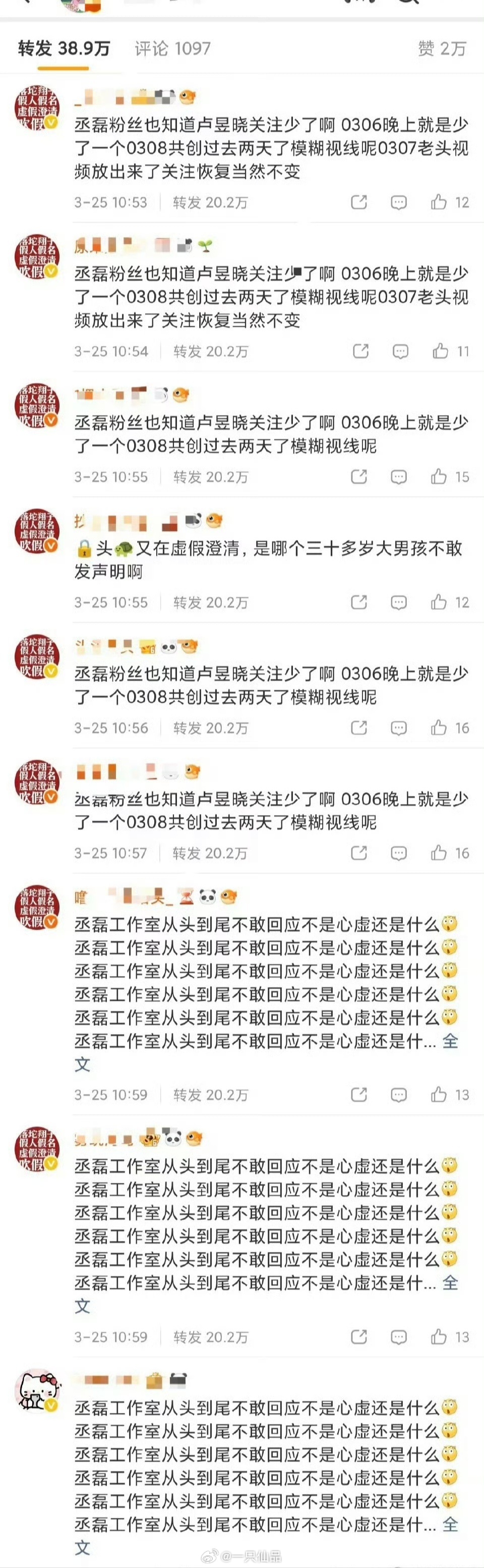 丞磊粉丝和卢昱晓粉丝在互相排字