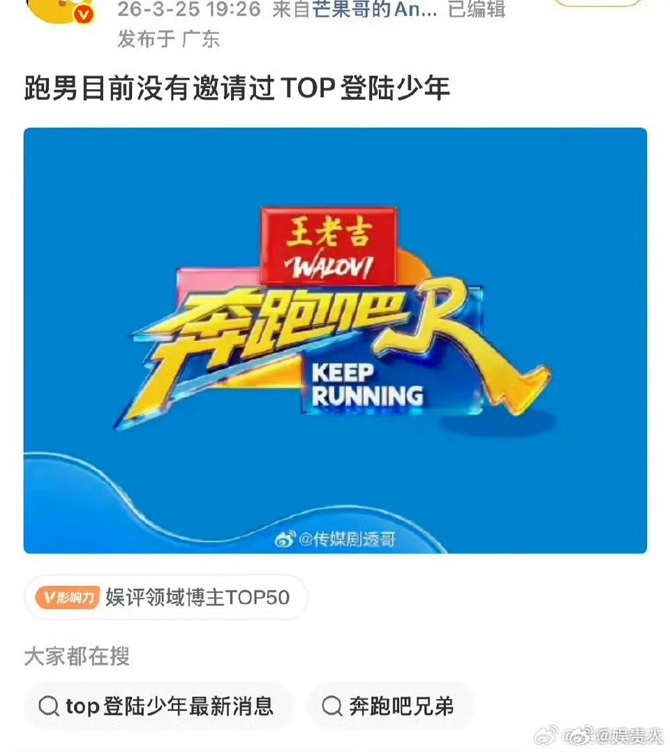 瓜主称跑男没邀请TOP瓜主爆料今年跑男没计划邀请TOP曝跑男目前未邀请TOP