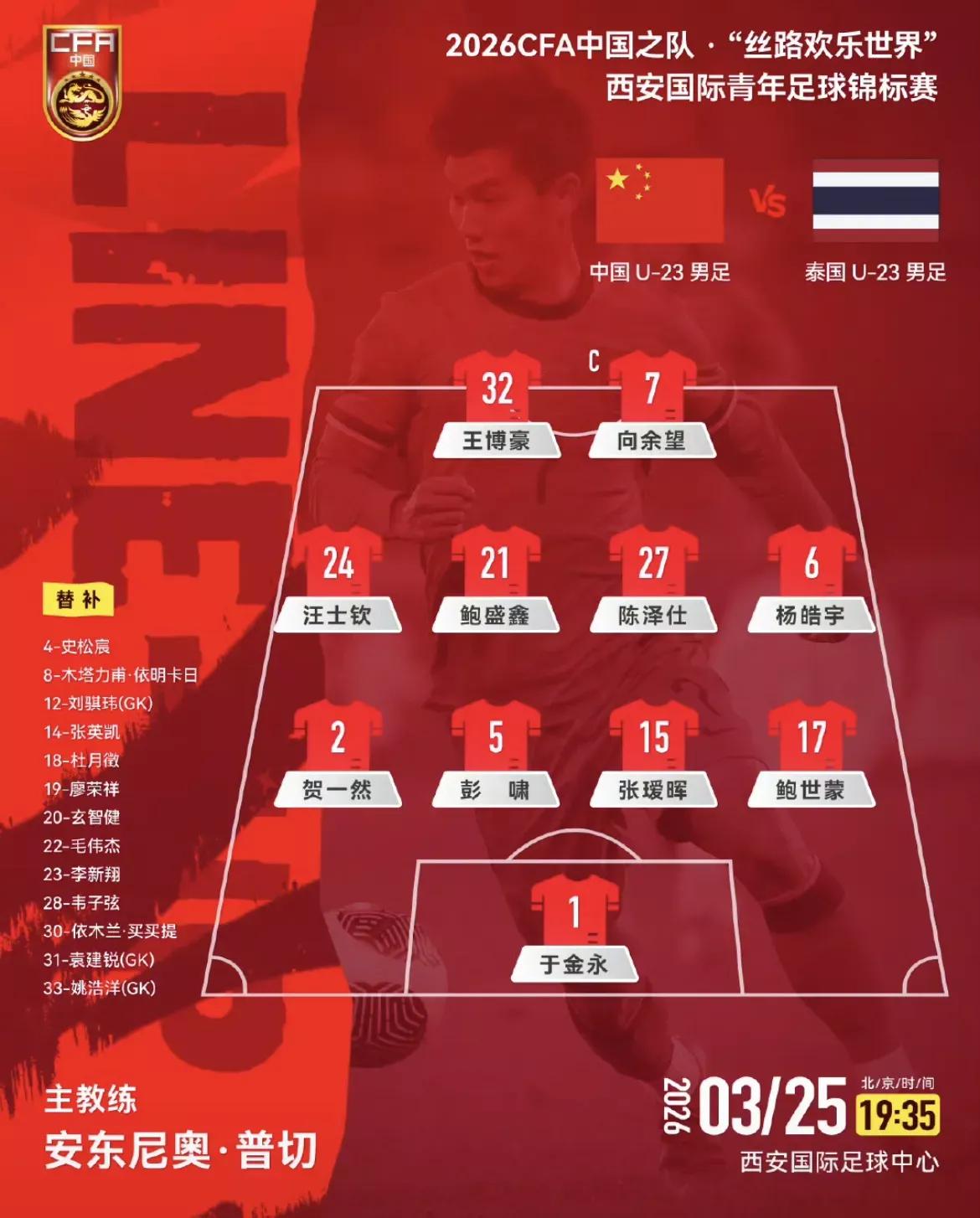 不服不行 汪士钦不仅重新入选 而且排进首发阵容 随着国家队大量征调年轻U23球员,安东尼奥又重新组织本届锦标赛的球队名单,备受争议的汪士钦这次又被安东尼奥重新召回U23国家队,身披24号战袍,担任442阵型的左前卫。 汪士钦不仅重新被召回,还担任首发阵容的左前卫。 安东尼奥不是一般的教练,胆子还是很大。 这样的教练令人敬佩。仅仅从汪士钦的装束来看,飘逸的长发剪短了,红指甲也没了。就看场上的真实表现。