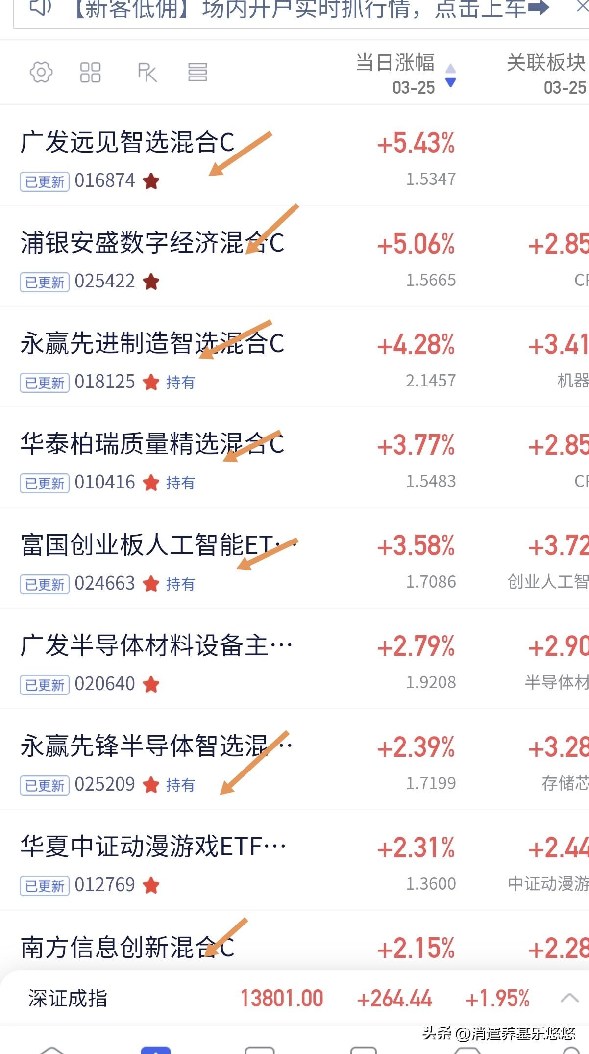 净值出来,机器人出了一回彩,永赢机器人大涨4.28%,cpo蒲银数字经济大涨超5%,净值创出新高,华泰博瑞有点落后了,蒲银经得起考验,最终业绩超前,这两个比较我当时选择了华泰博瑞。广发远见大涨5.43%,看今天净值它是cpo,基金了。永赢先锋(存储)及南方信息混合(半导体设备)今天落后板块指数涨幅。持有基金今天比昨天肉块大一点!