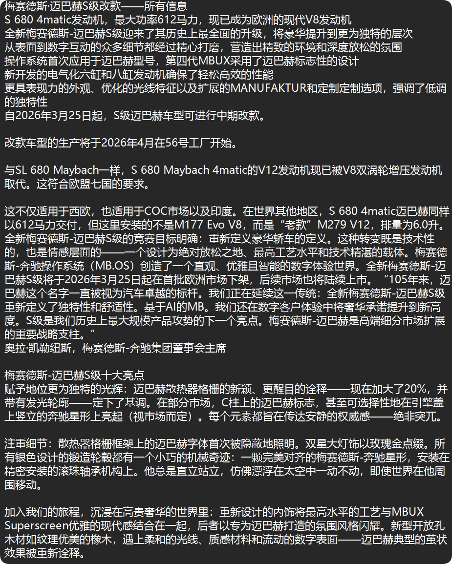 梅赛德斯·迈巴赫S级改款 中文网络最详尽信息搬运
