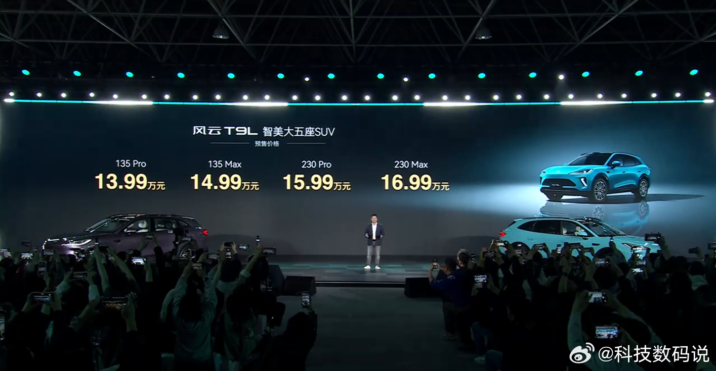 奇瑞风云之夜T9L正式预售 奇瑞风云之夜上,风云T9L正式开启预售了,13.99-16.99万的预售价格,奇瑞的诚意还是非常足的!这款车的特点也是非常鲜明,非常大,2920mm同级最长轴距,二排能够轻松翘起二郎腿,而且也打造了全场景适配的百变空间。长途自驾,野外露营,它都能够满足用户的空间需求。这款车的设计上也非常有中国传统的意境美,而且车色的选择上,不管是“鸣沙翠”还是“山烟紫”,真的一眼就能感受到东方美学!而且这次奇瑞也带来了更多智能化方面的配置,搭载猎鹰700+智能辅助驾驶系统,激光雷达以及地平线征程 6P 辅助驾驶芯片。动力方面的配备也足够强,搭载鲲鹏超能混动 CDM 6.0 系统,1.5T 插混专用发动机,0-100km/h 加速也是 5s 级。纯电续航方面,长续航版搭载 32.7kWh 电池,官方 CLTC 纯电续航 230km,满油满电综合续航超过 2000km。总体来看,这款车的整个配置还是非常有竞争力的,瞄准家庭多场景用车需求,目前预售也有各种权益,值得关注一波!