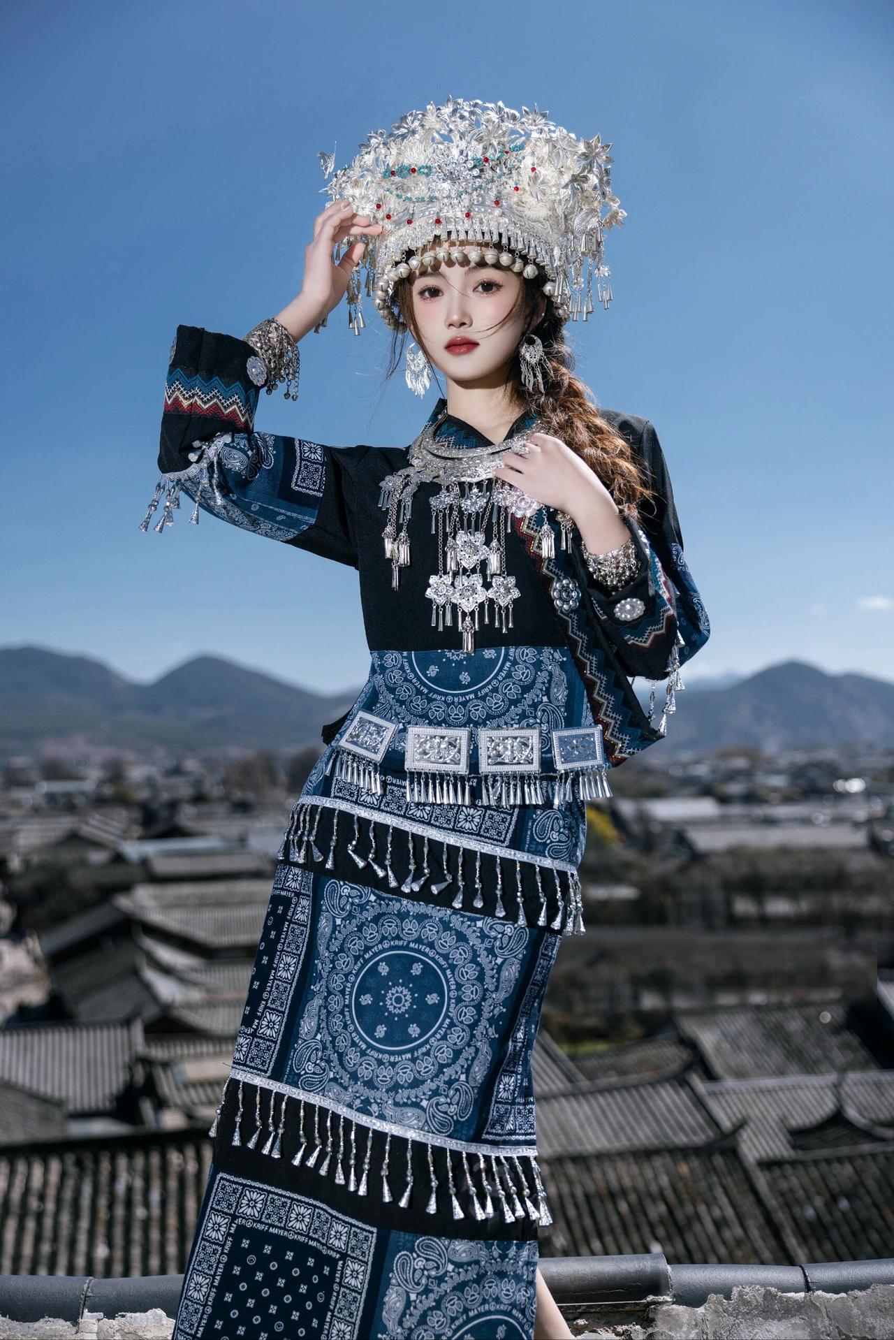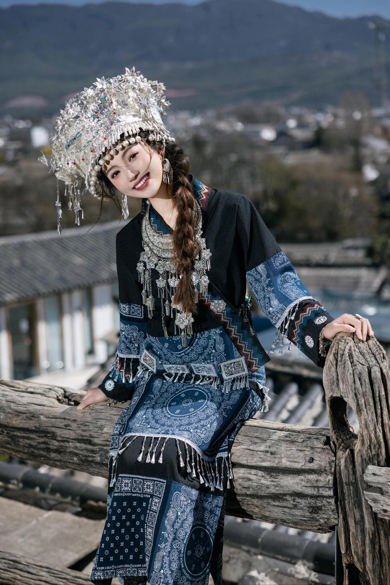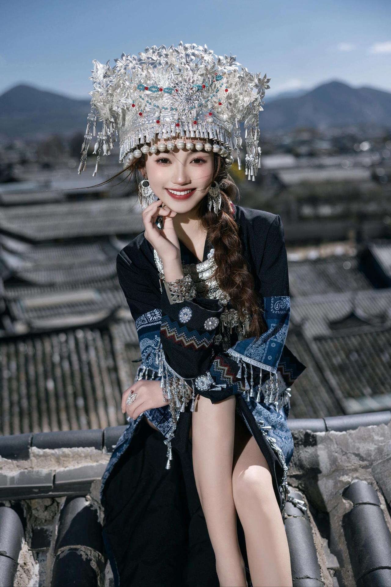 惊艳的民族风头饰笑容灿烂的姑娘传统与现代的完美融合民族风刺绣发箍 民族风穿搭