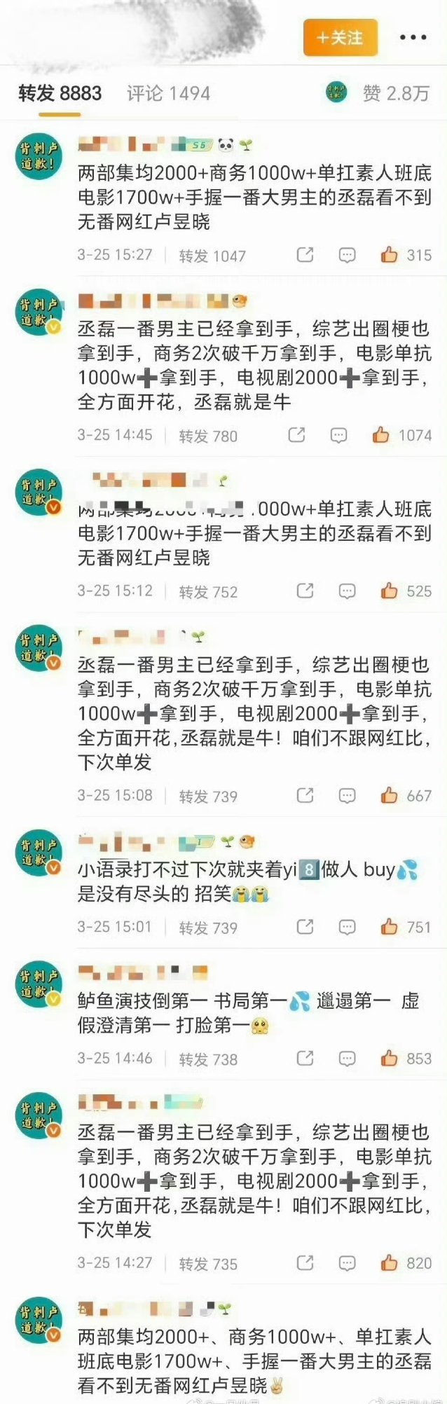 丞磊和卢昱晓两家互相排字中