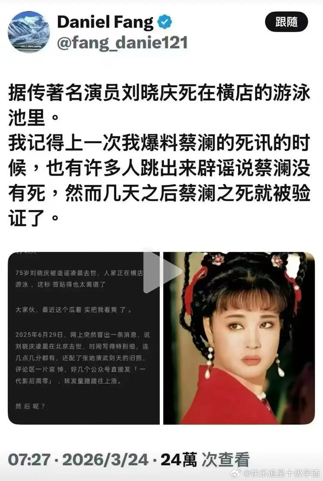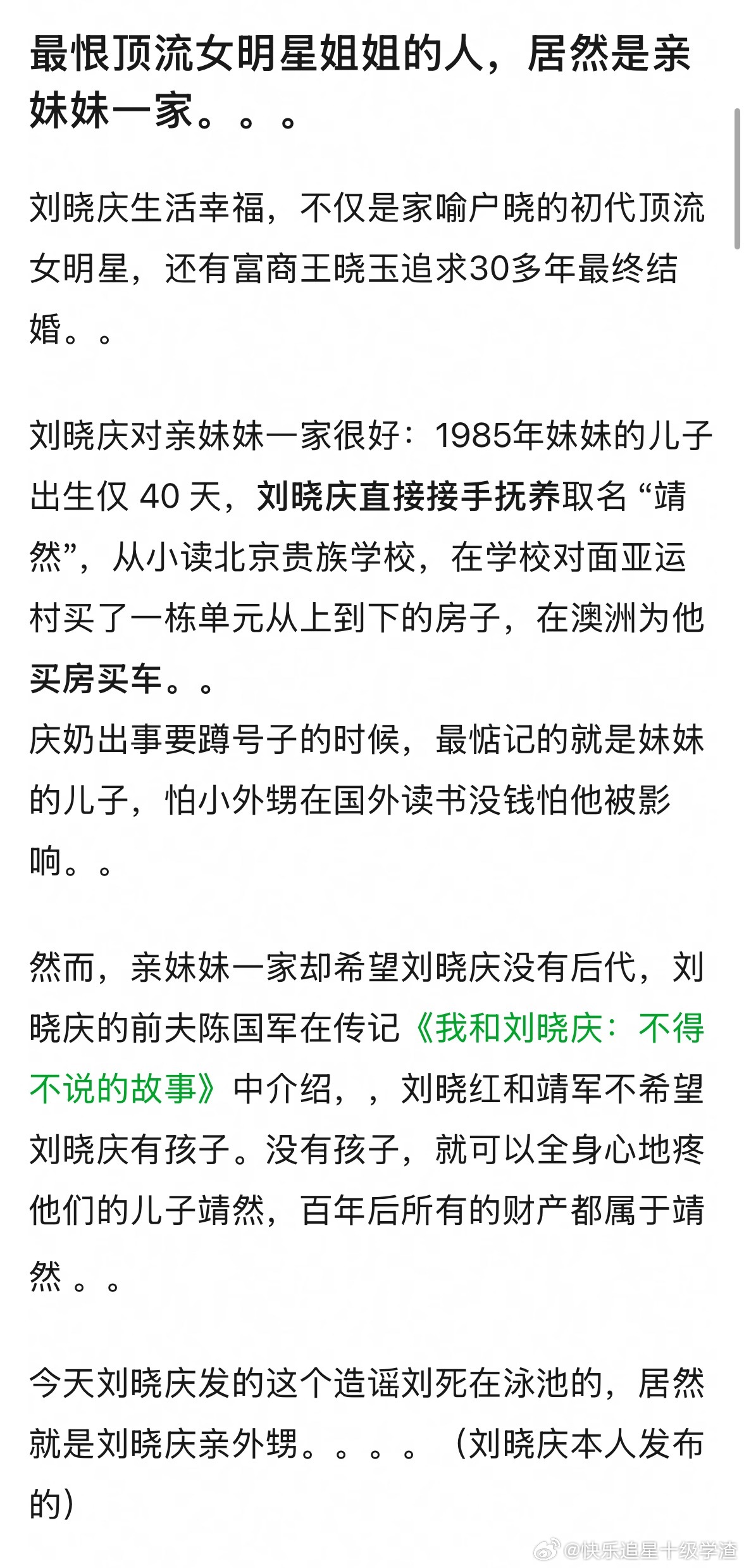 造谣刘晓庆去世的是她外甥白眼狼