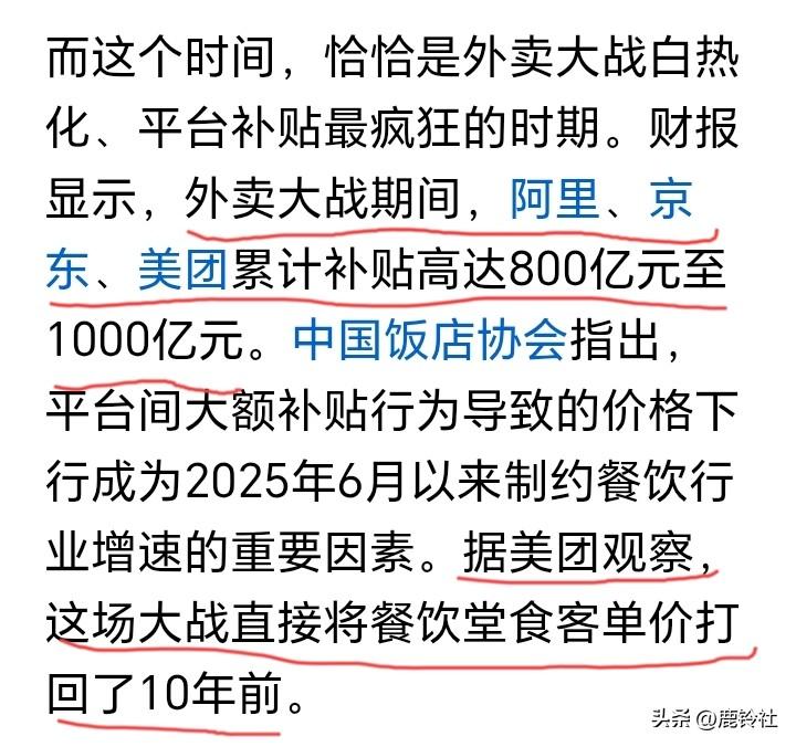 在官媒眼里,外卖大战一无是处,我看未必,起码给全国的餐饮小商户带来了海量的订单,也增加了收入,给全国的外卖骑手发了奖励补贴,这些都是三大平台自掏腰包的。