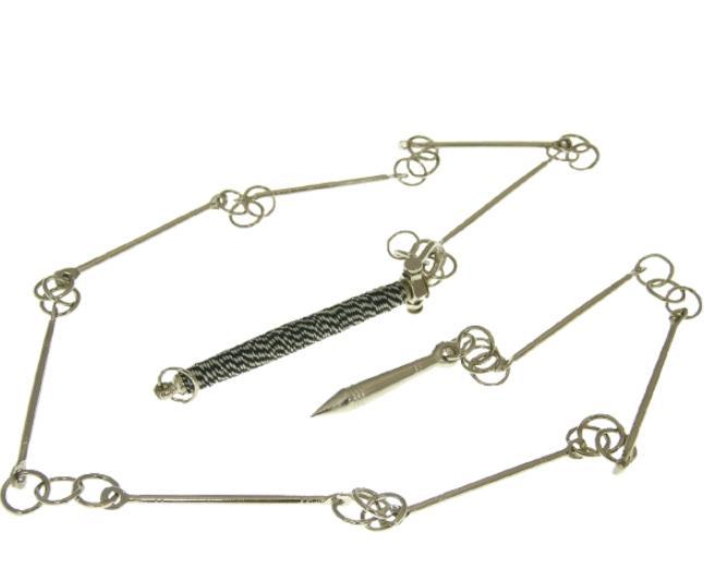 九节鞭 是武术中著名的软兵器,以其独特的“软硬兼施”风格和极强的观赏性著称。 起源与发展 九节鞭大约起源于宋代。据《少林拳谱》记载,宋初福居禅师邀请十八家武林高手汇聚嵩山少林寺交流武艺,九节鞭就是在此时传入,并逐渐发展为风格独特的少林九节鞭。 早期雏形:宋初仅有十个招势,后在元、明、清历代武僧研练下不断丰富,增加了如“一字滚堂鞭”、“四门八步鞭”等套路。 套路与分类 九节鞭的套路非常丰富,主要分类如下: 按路数分:有六路,包括一路护身鞭、二路滚躺鞭、三路四门八步鞭、四路火龙鞭、五路双花鞭、六路梅花鞭。 按形式分:有站鞭、地趟鞭、刀加鞭以及对练的草镰破鞭等。 器械特点 九节鞭由鞭把、鞭头和中间8个钢节用圆环连接而成,一般长度以人体直立、鞭把顶下颏、镖头触地为宜。其技术风格鲜明: 运动轨迹:以立圆、斜圆、平圆等圆周运动为主,抡起来“似车轮飞转”。 技法核心:谚语云“巧打流星,顺打鞭”,强调顺势而出。主要技法有抡、扫、缠、绕、挂、抛及舞花等。 风格描述:人们常以“收回一团,放击一片”、“软似绳索,硬似铁棒”来形容其收放自如、刚柔相济的特点。 练习要诀 要想练好九节鞭,需要循序渐进,并掌握核心要诀。 循序渐进: 1. 克服恐惧:先从扎长鞭彩开始,降低转速,熟练绕鞭动作。 2. 鞭随身转:注意力放在身形转动上,让鞭子顺势而为,而非手臂僵直地摇鞭。 3. 由轻到重:从无彩钢鞭到钢管、重铁棍,逐步增加负重,提升力量与转速。 核心要点: 手腕灵动:出鞭甩腕、收鞭扣腕,这是顺畅连贯、不伤自身的关键。 借势顺力:善用鞭子运动的惯性、离心力,让动作衔接自然。 唯快不破:转速的快慢是衡量持鞭者技术高低的重要标准,直接决定攻击力度。 实战效果 威力:九节鞭在古代常用作暗器,可缠于腰间隐蔽携带。实战中“纵打一线,横扫一片”,杀伤力强,令人防不胜防。 威慑力:实战中保护自身、令对手无法近身是第一要义。持鞭者若能舞得风雨不透,本身便具有极强的心理威慑力。 著名人物 古代名家: 尉迟恭:唐朝名将,凌烟阁二十四功臣之一,传说中使用的便是鞭,后成为民间“门神”原型之一。 呼延灼:《水浒传》中的人物,善使两条水磨八棱钢鞭,有万夫不当之勇。 现代名家: 李赞臣(1911-1995):著名武术家,因其高超的鞭法被王子平称为“飞鞭李”,1956年受到贺龙元帅接见,1979年在全国武术观摩交流大会上获金牌。 ⛓️ 克星关系 有意思的是,九节鞭本身被认为是刀、剑等短兵器的克星。因其攻击范围远、轨迹多变,使刀剑者往往很难近身。从器械相克的角度看,其克星可能是长兵器(如枪、棍),通过拉开距离、远距离戳击来克制鞭的攻击范围,或是暗器/弓箭等远程投射武器。 九节鞭是一门易学难精的武术。正如拳谚所云:“鞭是一条绳,全靠缠得清”,唯有通过科学训练,掌握其“鞭走顺劲”的规律,方能达到“人鞭合一”的境界。