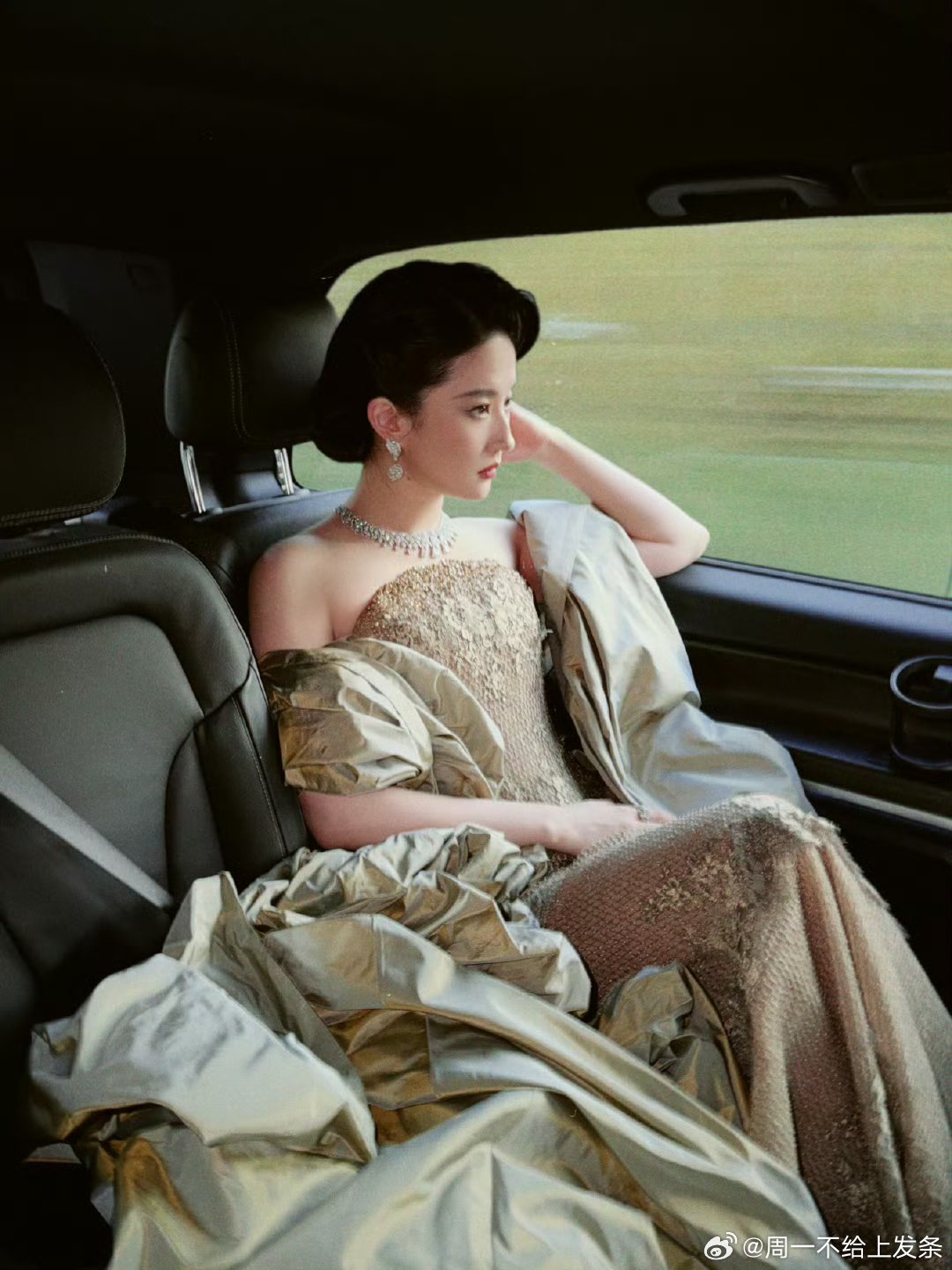 刘亦菲 车窗光影勾勒出刘亦菲独有的清冷矜贵,眉眼间自带疏离又高贵的气场,一抬眼便是公主与女王的双重氛围感~
