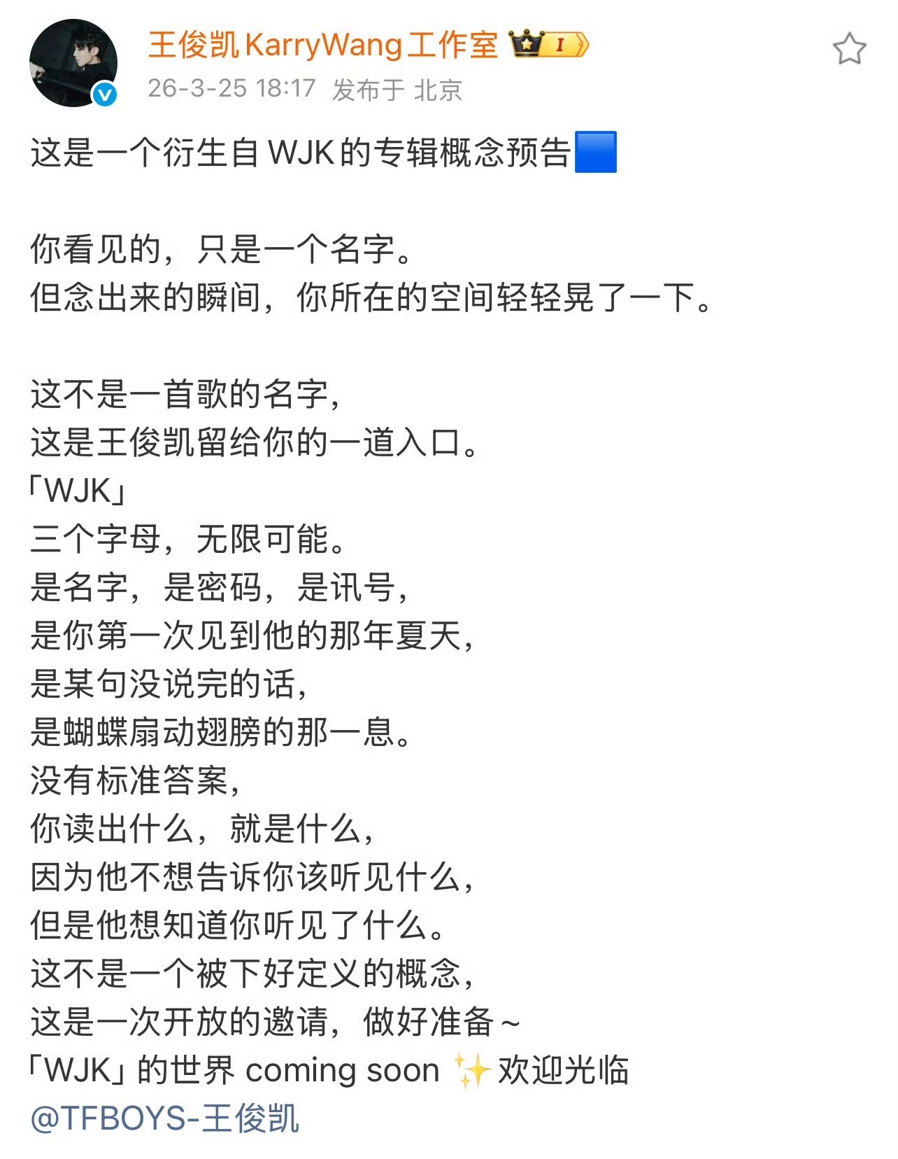 期待王俊凯新专辑《WJK》