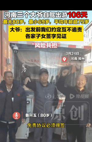 三个老头,一辆车,一纸“生死状”!这才是成年人最高级的友情! 刷到件事,真给我整破防了。 三位长者结伴自驾游,出发前先签免责声明:路上出任何问题,不追究任何人责任。 你第一反应是不是觉得“太见外”?我第一反应是——佩服,真特么佩服! 想想这背后的阻力有多大。这个岁数,家里妻子儿女哪个不劝?哪个不担心?“万一路上……”这话能念叨八百遍。换一般人,早就怂了,算了,不去了。 但这三位,偏不。 他们不是不知道风险,恰恰是太知道了,才把丑话说在最前面。签这份声明,不是跟兄弟生分,是跟兄弟说——“我这条命,我自己兜着,你别替我背锅。” 这就叫先小人后君子,或者应该说是君子坦荡荡。 多少所谓的“铁哥们”,最后因为一场意外、一笔钱、一句“你怎么不看着点”,反目成仇?人性经不起考验,他们懂。与其把几十年的交情架在火上烤,不如一开始就把“责任”这两个字从友谊里剥离干净。 剩下的,全是真心。 说实话,我太羡慕这仨老头了。日子进入倒计时,还能有人陪你疯,陪你走,还愿意跟你签“生死状”——这份信任,比什么山盟海誓都重。 君子之交淡如水,淡的不是感情,是利益纠葛;浓的是那份心照不宣的默契:你只管开车,我负责看风景,出了事,是我自己的命。 能走得动的时候,去看想看的风景;能拎得清的时候,护住最铁的兄弟。 这才是真的“人间清醒”。 愿我们老了,也能有这样的朋友,签这样的声明,活出这份坦荡。
