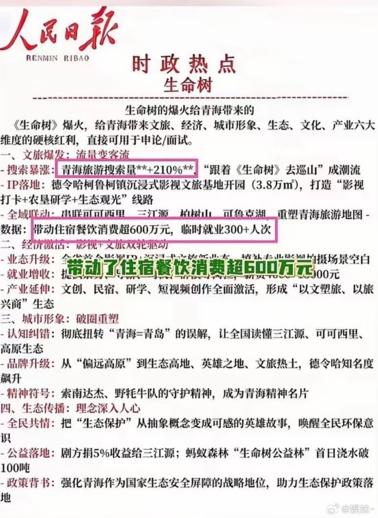 杨紫《生命树》集均1381万!《生命树》热播期52天结束,最终云合集均1381
