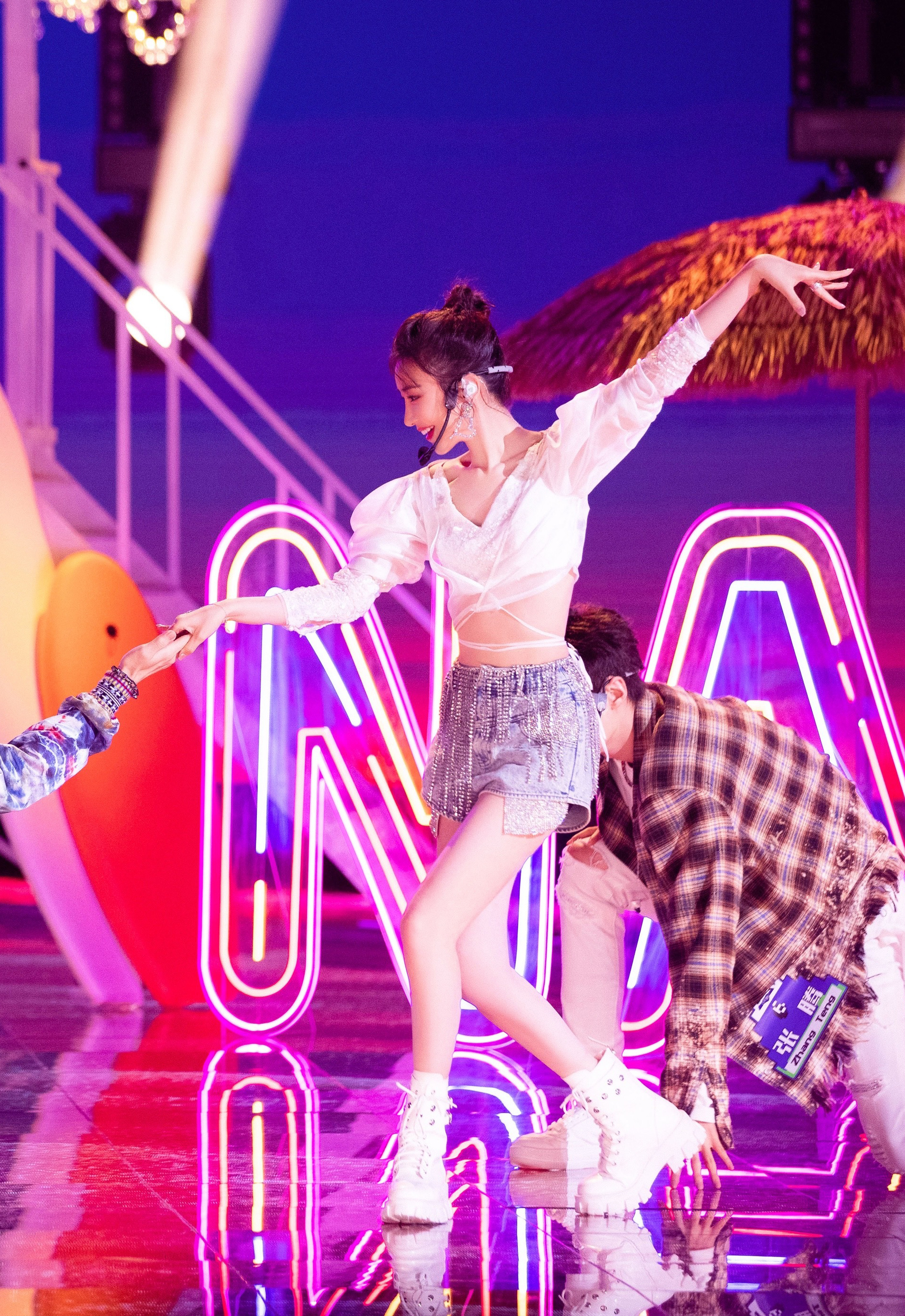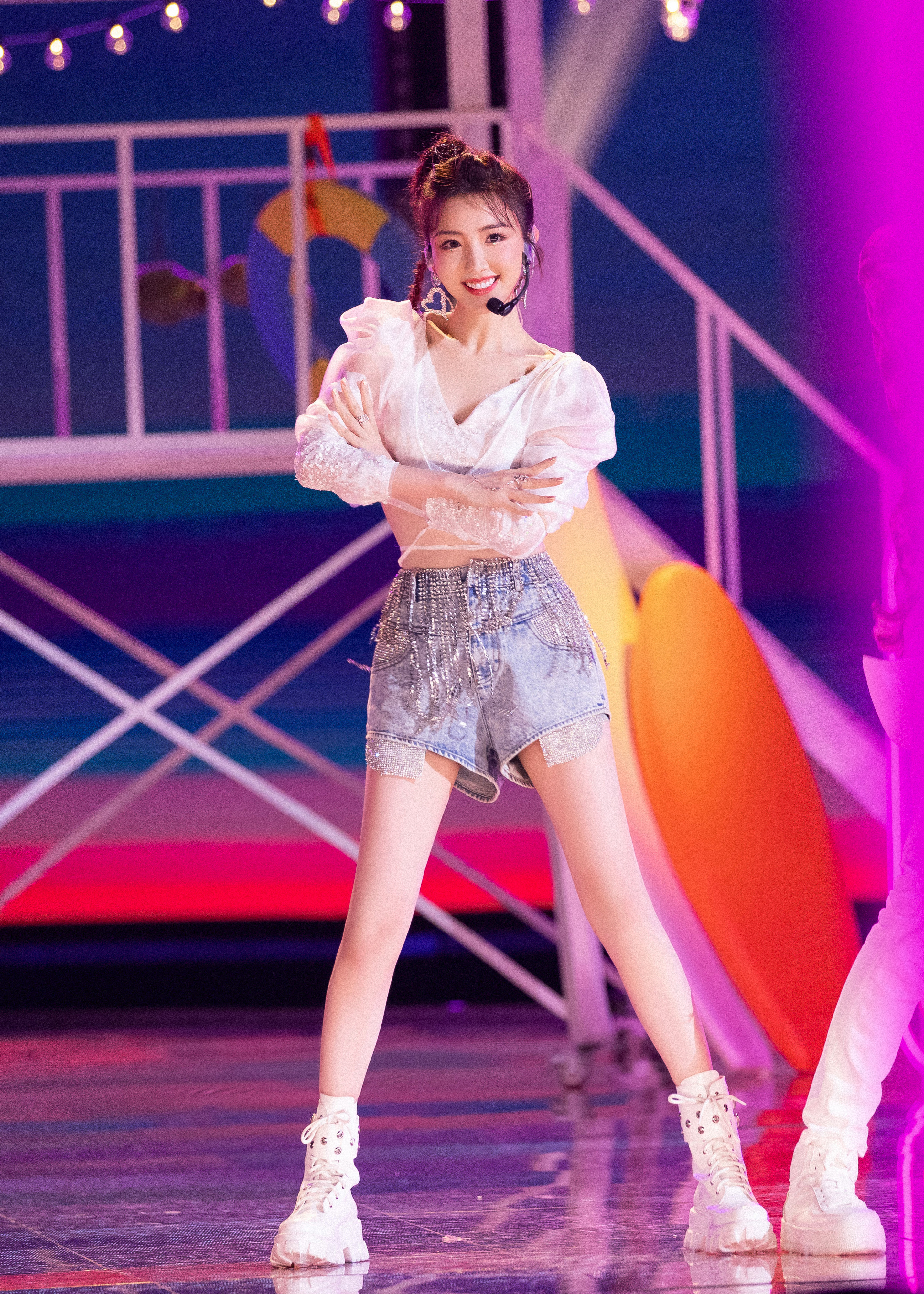 杨幂x《明日之子》紫色开叉裙·美腿一览无遗