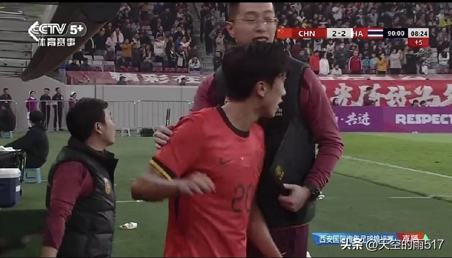 中国国青队与泰国国青队的全场比赛结束,双方以2-2的比分打平。 经过中场休息,下半场的国青队明显比上半场表现更优,向余望、李新翔帮助球队扳平了比分。此后,国青队还有机会,但未能抓住。期间,泰国队因伤更换了一名守门员。比赛结束前,双方在泰国队禁区内发生推搡,各有一人被罚下,最终比赛画上句号。