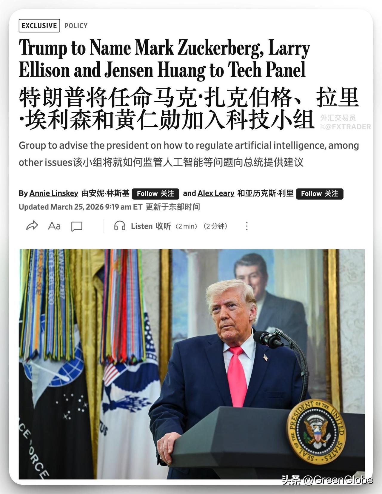 《华尔街日报》报道:美国总统特朗普计划任命美国商界的一些重量级人物到白宫科技政策顾问委员会,听取就人工智能政策和其他问题的意见,其中包括Meta CEO扎克伯格、甲骨文创始人埃利森、英伟达CEO黄仁勋、谷歌联合创始人布林和戴尔创始人迈克尔·戴尔。 预计周三将任命13名初始成员,委员会成员最终可能达24人。 评论区的留言:清单里怎么没有特斯拉的埃隆·马斯克的名字?