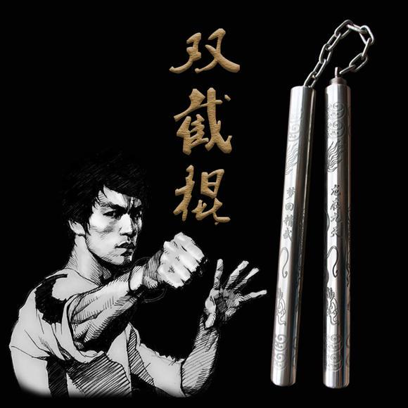 双节棍, 因李小龙的电影而风靡世界,是一件兼具实战与表演魅力的奇门兵器。 起源:从农具到兵器 双节棍的历史可追溯至春秋时期的农具“连枷”,用于谷物脱粒。战国时,墨子将其改良为守城器械“连挺”。相传宋太祖赵匡胤受连枷启发,创制了长短不一的大、小盘龙棍,用于扫击马腿,被认为是双节棍的直接原型。后来,这一兵器传至菲律宾和日本,在当地演变并流传开来。 练习步骤与防伤技巧 对于初学者,建议循序渐进,避免受伤: 1. 入门阶段:从“入门十二式”开始,如苏秦背剑、白蛇吐信、左右逢源等基础动作。观看教学视频,模仿标准架势,先不要急于用力。 2. 核心要诀: 选对器械:初期选用轻便、棍身裹有泡棉的练习棍,即使打到自己也不会太疼。 握棍位置:手握在棍的中上部分,不要握末端,以便更好地控制。 防伤技巧:一定要遵循“先慢后快,先死后活”的原则。在动作没熟练前,速度要慢,避免乱抡乱抛,尤其要保护好头部和面部。一旦感觉失控,立刻松手,别硬拽。 技击特点与套路 技击特点:双节棍集棍的刚猛与鞭的阴柔于一身。主要技法有劈、扫、抽、撩、点、绞等。它的最大特点是能长能短、能收能放,攻击范围覆盖上、中、下三路,尤其擅长攻击对手持械的手腕和膝关节以下部位。 套路体系:现代双节棍发展出丰富的套路,主要分为花式棍法(侧重表演、炫酷)和实战棍法(侧重攻防格斗)。基础有9大静态品式、无限旋风36式等,高级则有狂风扫叶棍等套路。 实战威力 双节棍的实战威力非常惊人。据测算,挥舞的双节棍一端,其落点可产生约1600磅的力,而人体骨骼只需8磅半的力就可击碎。它不仅可以猛力击打,一旦连接处的绳索或铁链缠绕住对方脖颈或持械的手腕,只需一拉一绞,便能制服对手或夺下兵器。 与三节棍的区别 虽然都是多节棍,但二者定位不同: 双节棍:属于短兵器,全长约70厘米。特点是短小精悍、便于携带,近身威力极大,适合贴身格斗和防身。 三节棍:属于长兵器,放长击远,攻击面更大。优点是软中带硬,敌人很难近身,但缺点是练习难度更大,对身体素质和力量要求更高,消耗也更大。 著名人物:李小龙与“菲律宾棍王” 李小龙:他是将双节棍推向世界的灵魂人物。在《精武门》《猛龙过江》等电影中,他出神入化的表演让全球观众为之疯狂。他不仅将双节棍融入截拳道体系,更将其打造成了文化符号。 丹·伊诺山度:美籍菲律宾人,被誉为“菲律宾棍王”。他与李小龙亦师亦友:李小龙向他学习了双节棍和菲律宾短棍技法,而他则拜入李小龙门下学习截拳道。在电影《死亡的游戏》中,他与李小龙的经典棍术对决,成为影史绝唱。