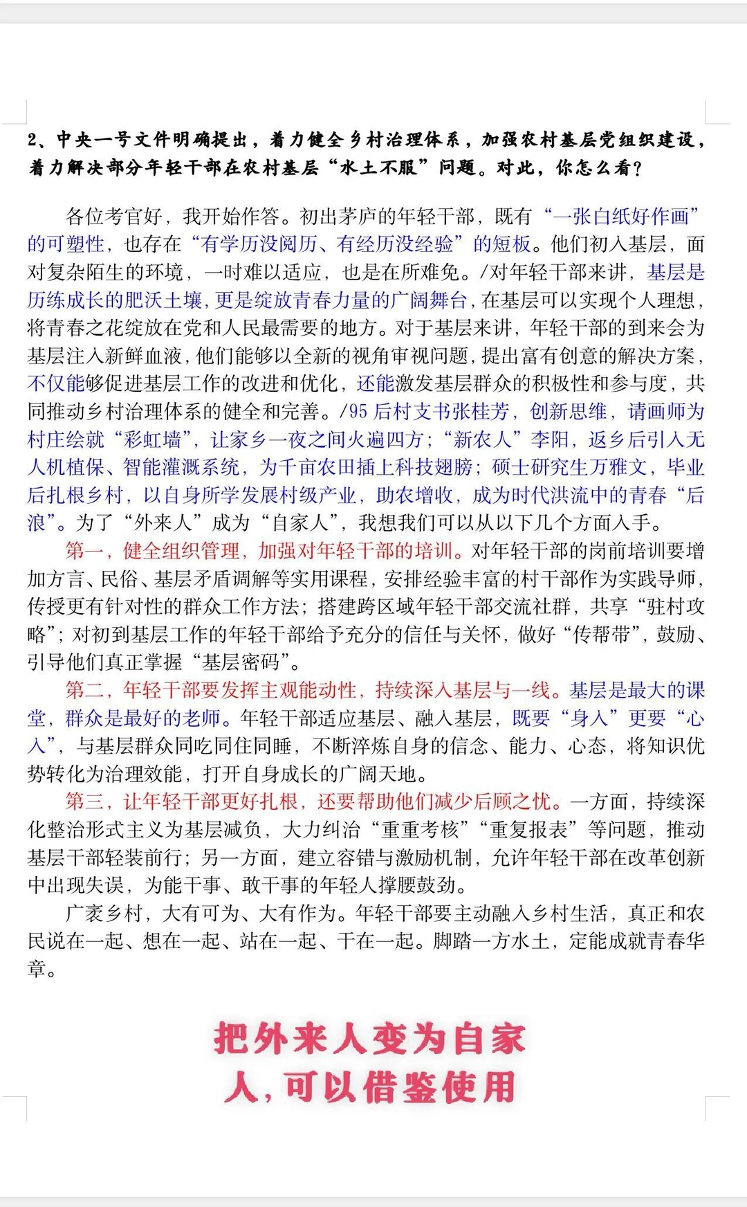 第一题,省情题,考的三农方向。 第二题,专业相关,但是难度降低了,结合基层了,问“如何”,答对策。