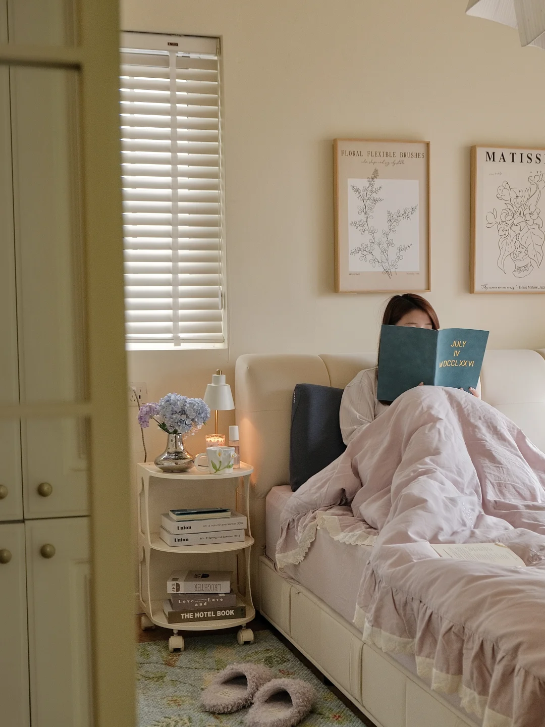 搭配了木百叶和亚麻纱营造慵懒舒适的氛围感