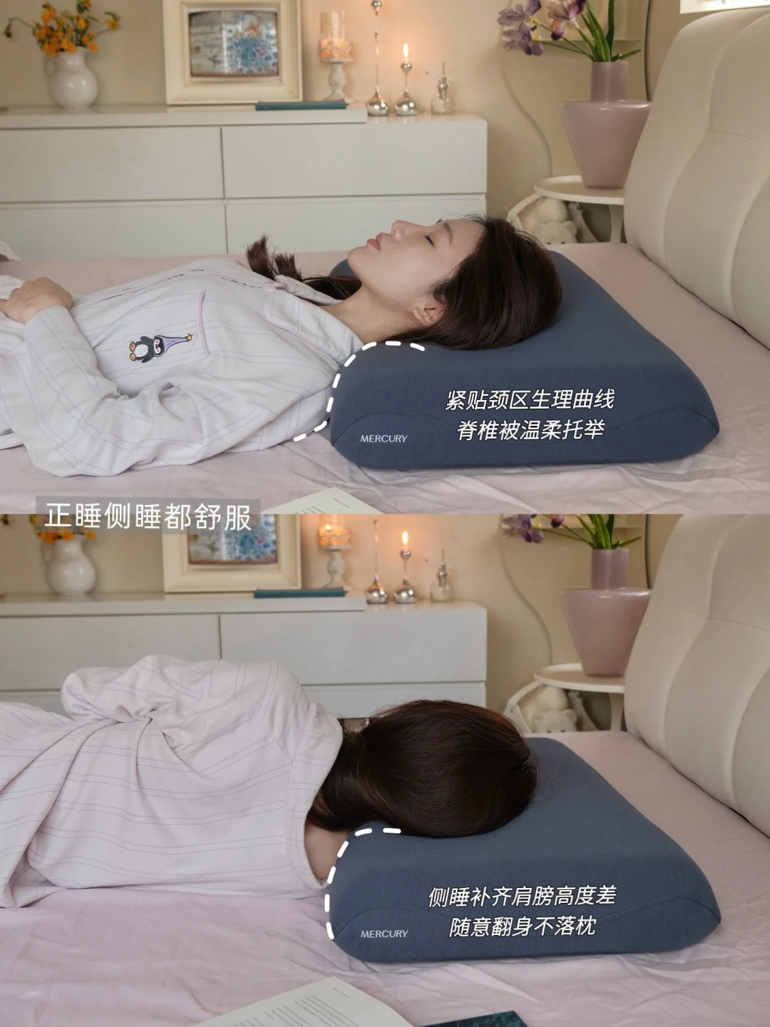 无论我怎么翻身,头颈肩都能紧紧贴合枕头