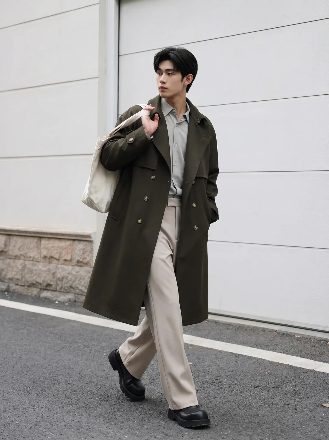 救命……这一身真的好显贵! 最近发现这种极简文艺男友风真的太耐看了! 不是那种用力过猛的精致,而是那种很有呼吸感的松弛。🍂 茶咖风衣,自带早春和初秋的沉静感。 内搭选择了高阶的灰绿色衬衫+米色西装裤。 冷暖色调的巧妙过渡,不仅视觉上清爽,而且非常显肤白。