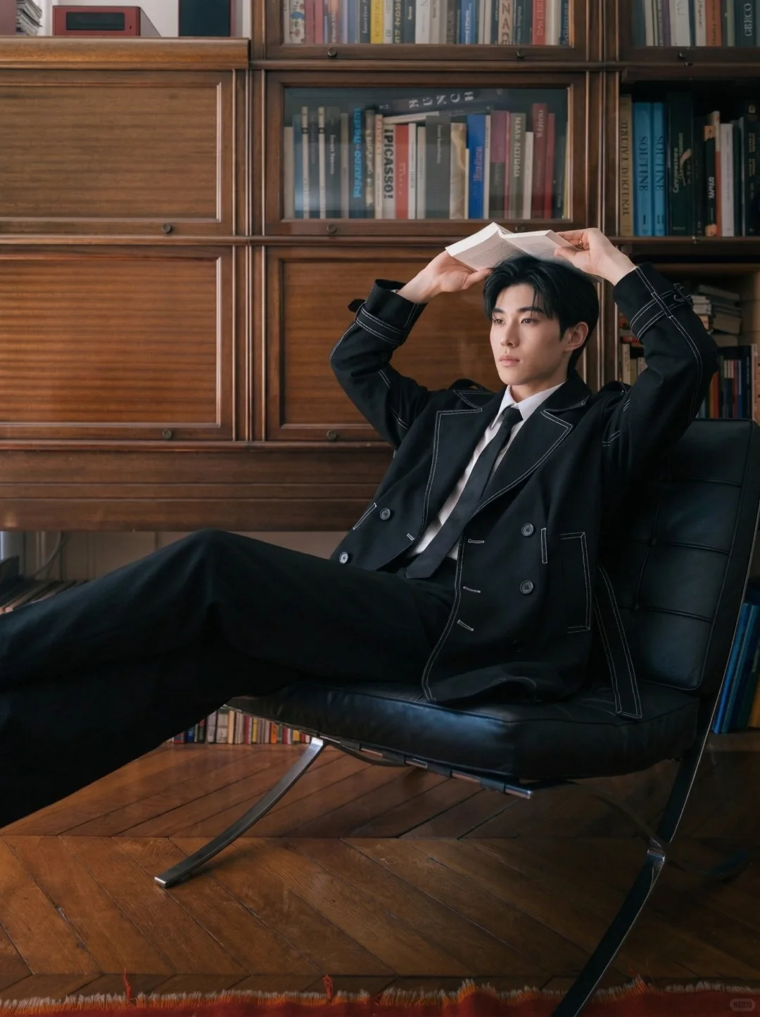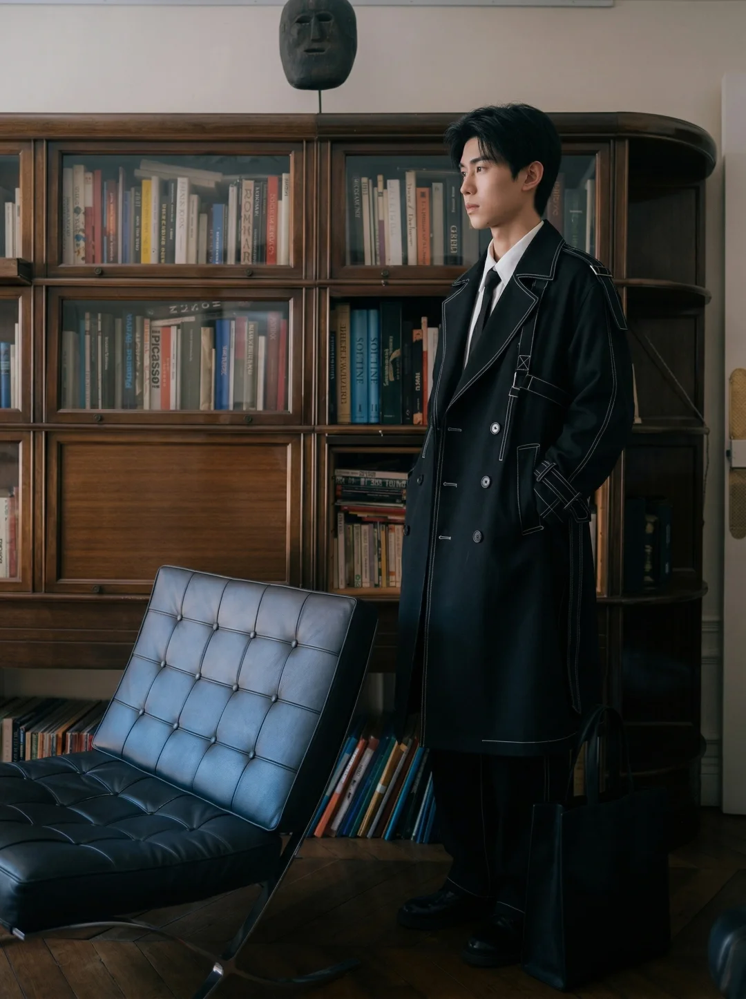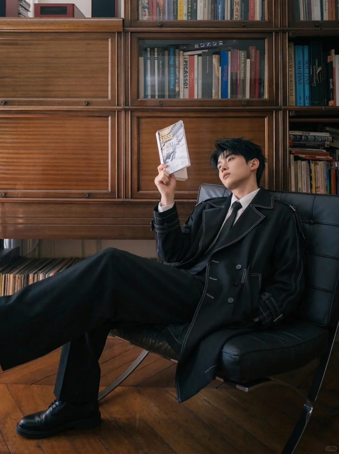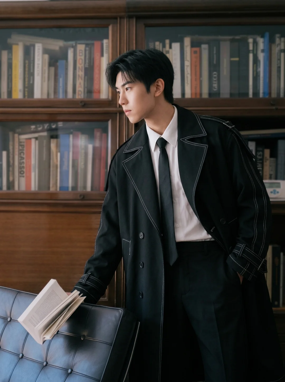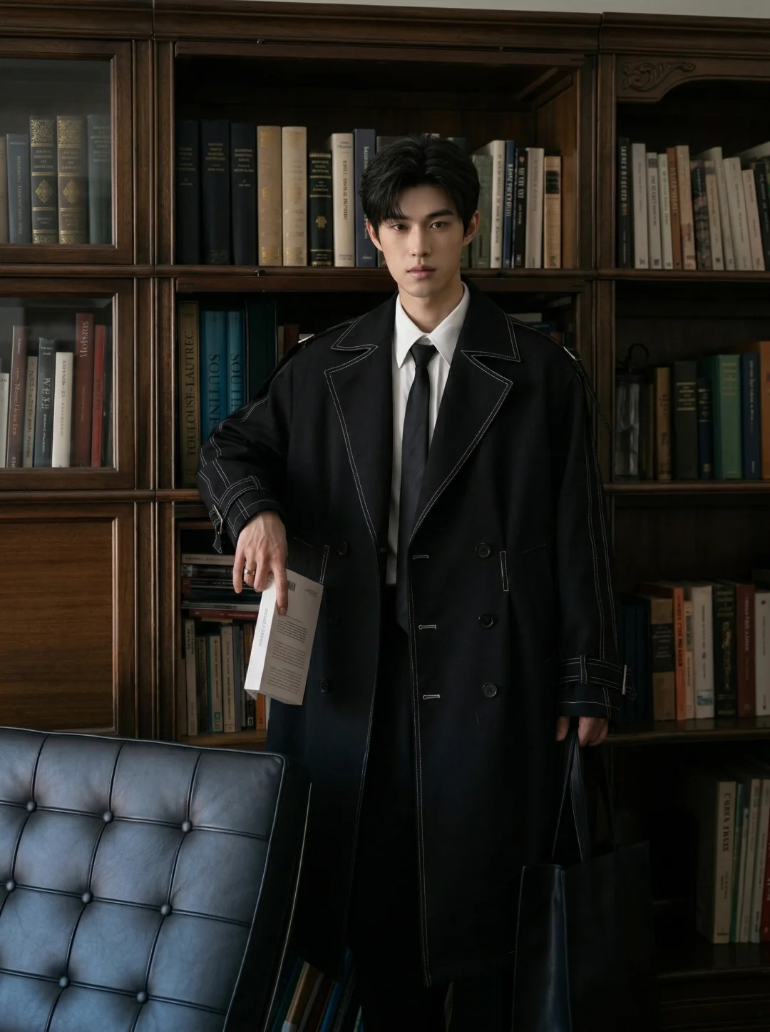 误入老钱风图书馆黑风衣穿搭太智性风了