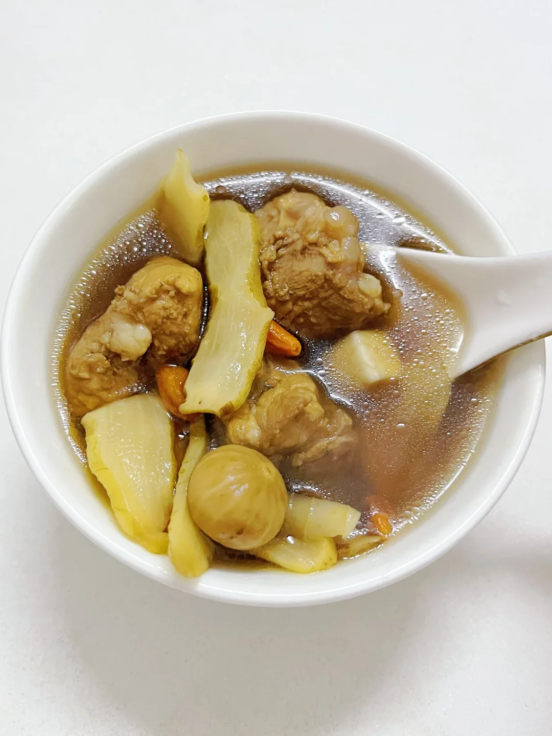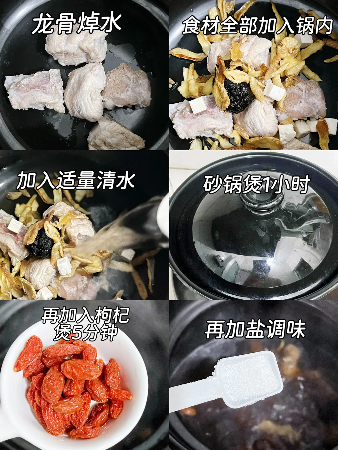 1. 龙骨冷水下锅,焯水2分钟(撇沫),捞出冲净;