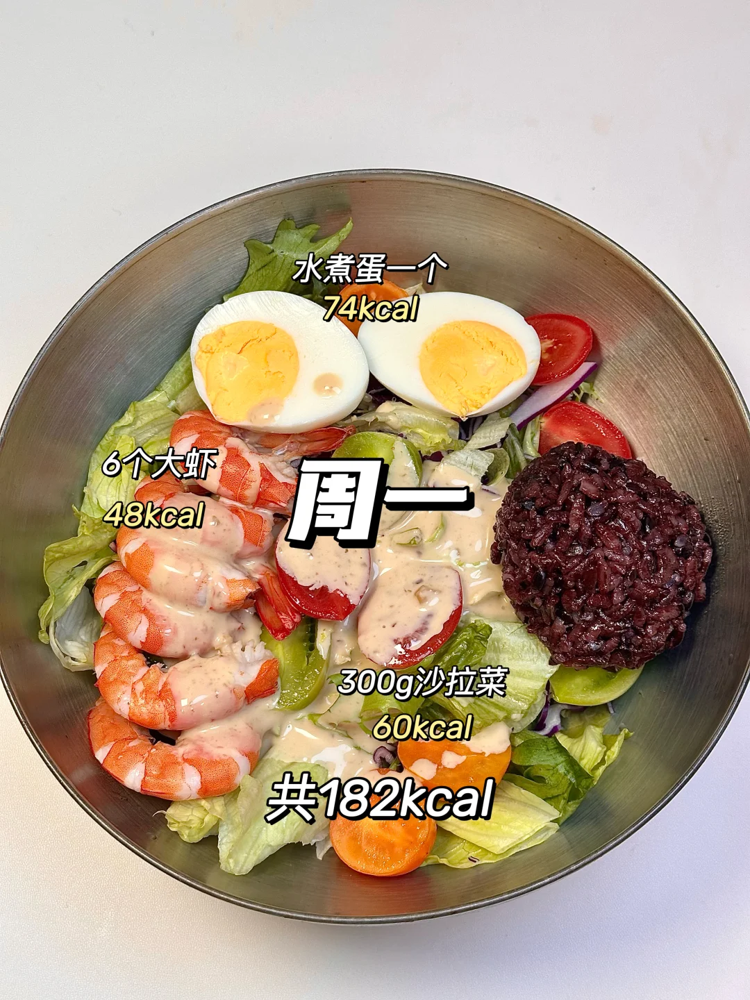 蔬菜+蛋白质+水果+优质碳水,再淋上灵魂沙拉汁,随便拌一拌就巨好吃,管理期的姐妹闭眼冲就对了!