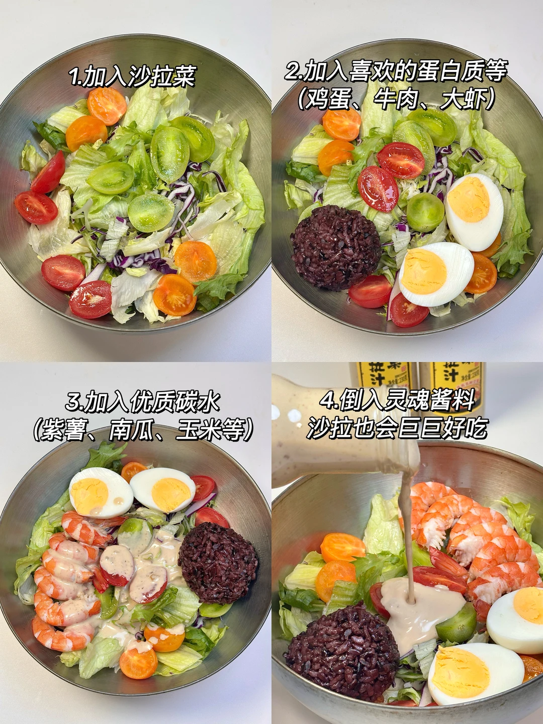 沙拉真的是懒人低卡天菜!下班回家根本不用费脑做饭,备好的菜从冰箱拿出来就能拌,跟着沙拉公式来,真的超省心✅